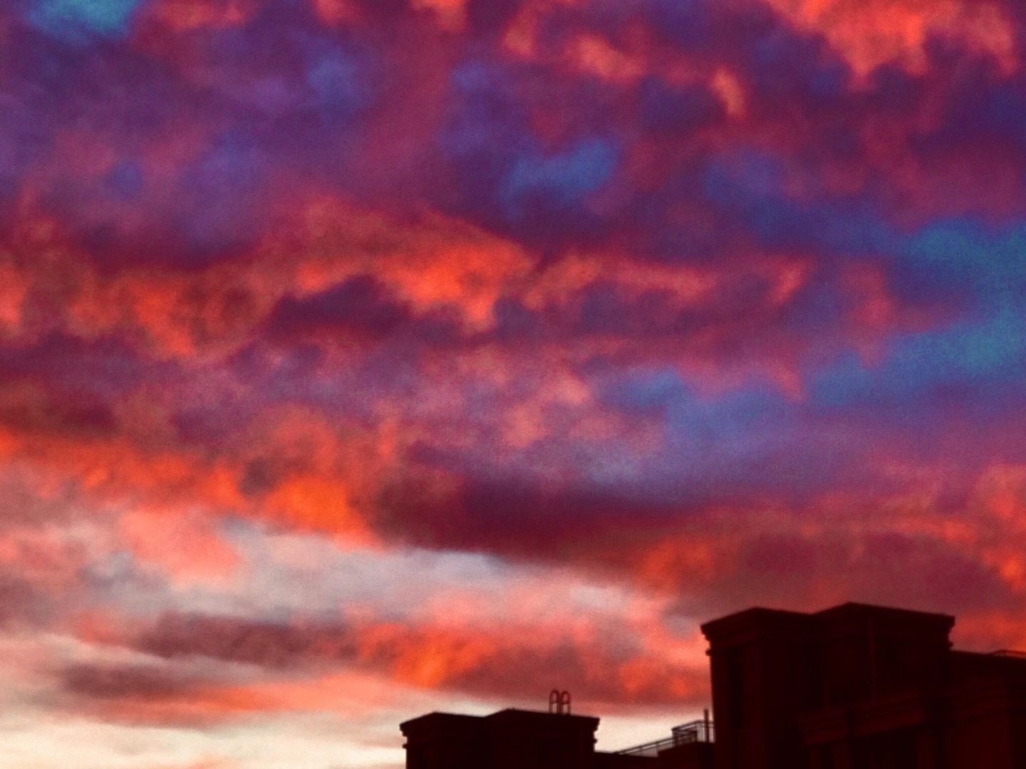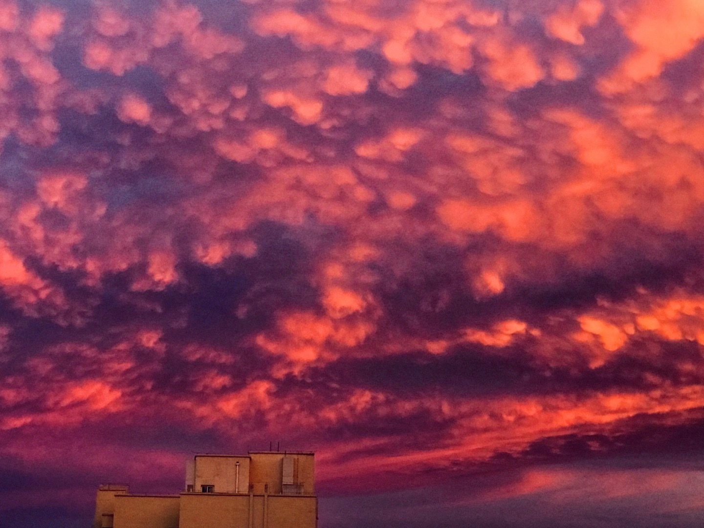 6月18日,北京天空中美丽的日出就像被大自然撞翻的颜料盘。
