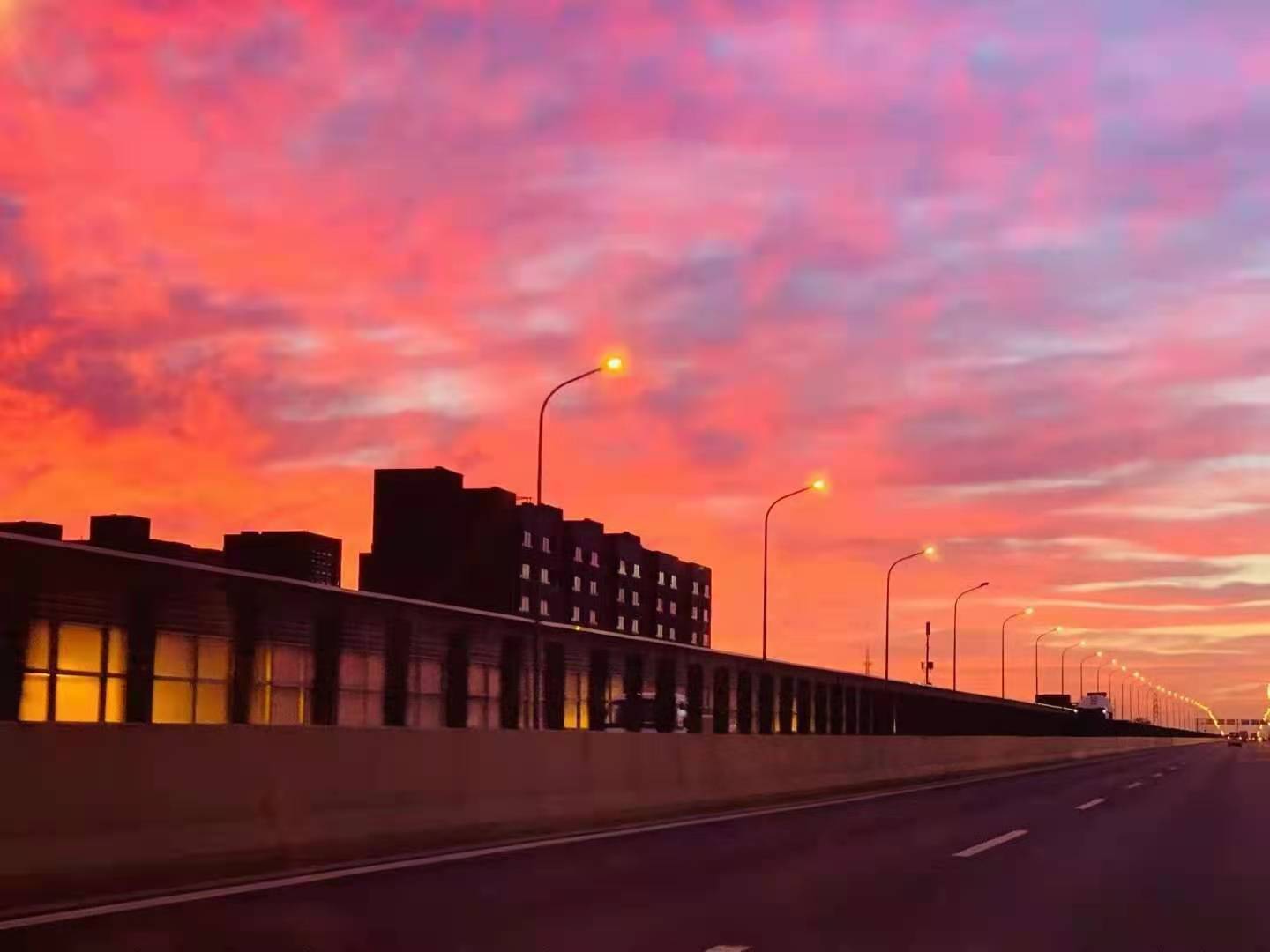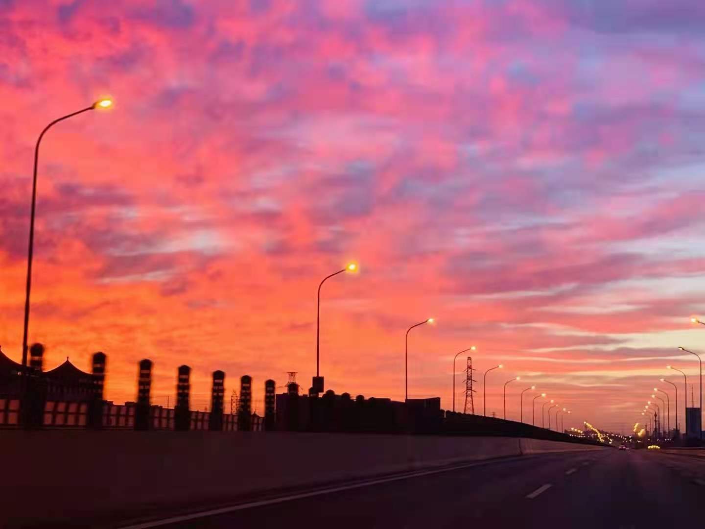 市民记录下美好瞬间,网友纷纷表示表示朝霞真太美了。