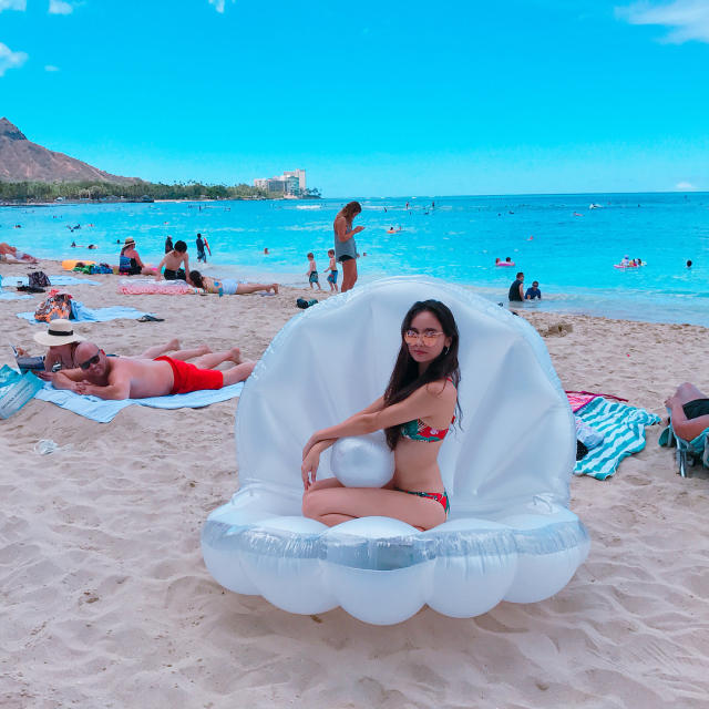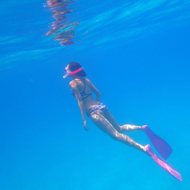 她喜欢去海边,有时候是安安静静地看看风景、听听海风,有时候还会去潜水~