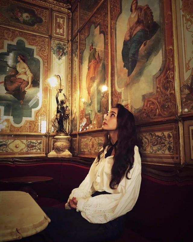 一头微卷的长发显得妩媚万分,