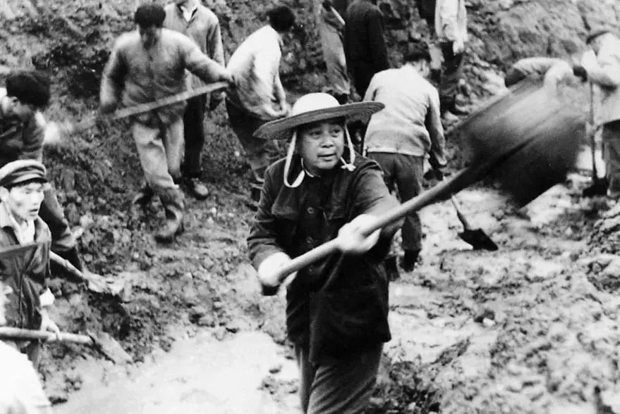 饶斌在二汽参加黄龙引水工程劳动