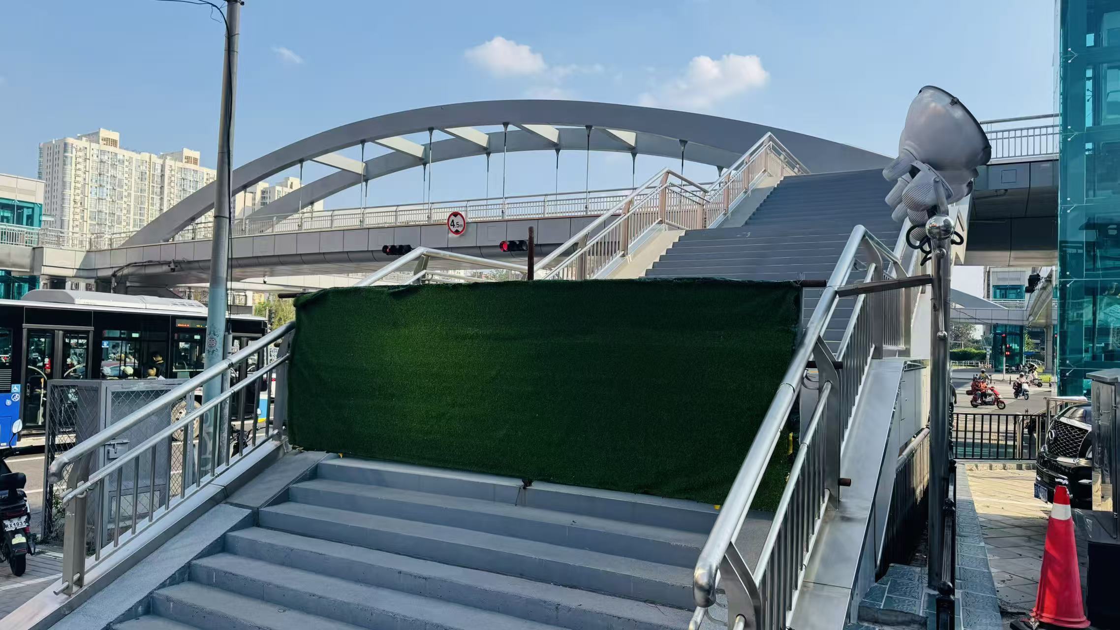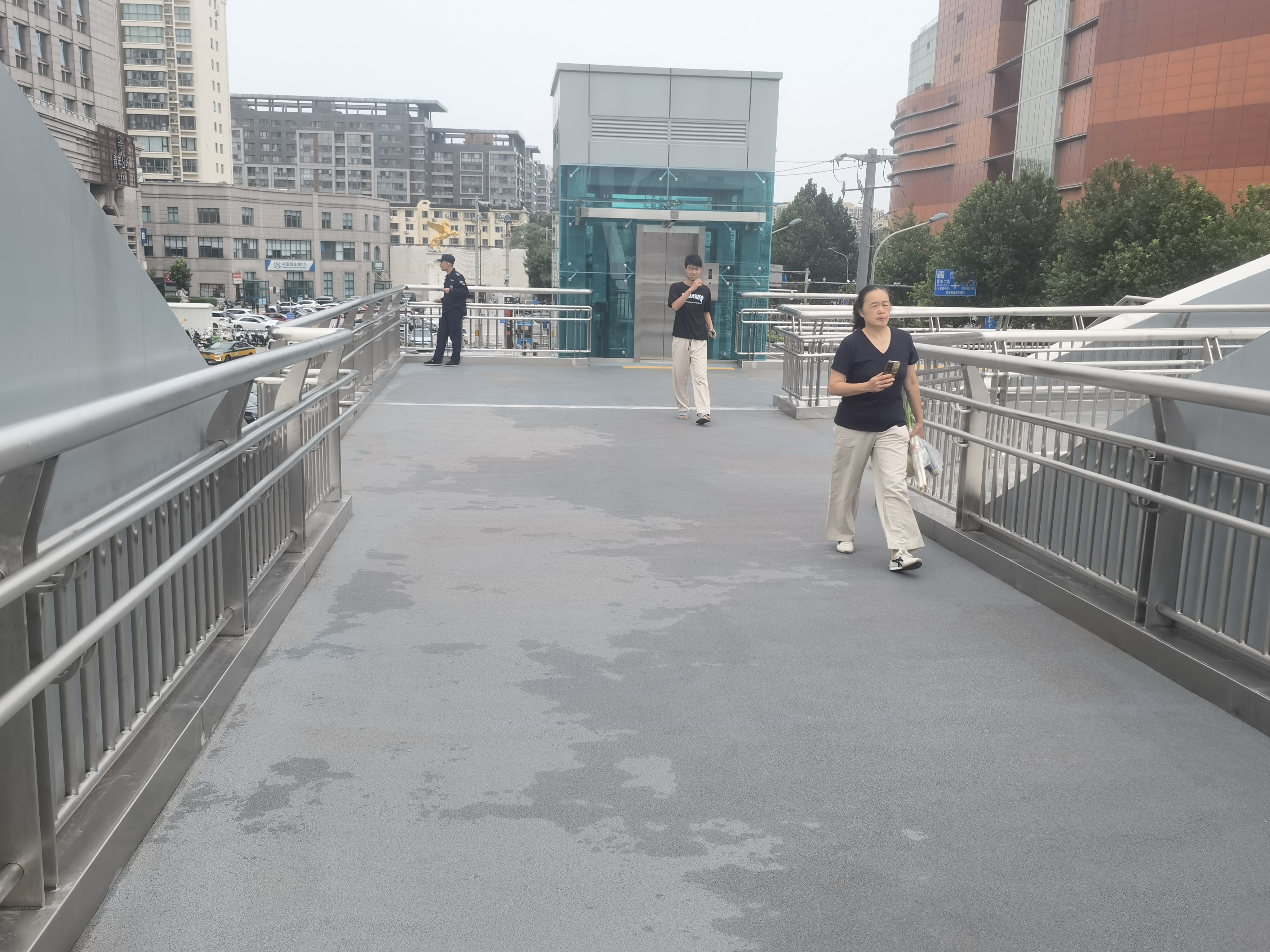市民:周边又是居民区,又是商场,还有地铁口,每天人流车流特别大。如果天桥开通的话,行人走上边,我们开车肯定也更好走,每次路过这块从东往西走,都差不多得等两个红绿灯的时间。