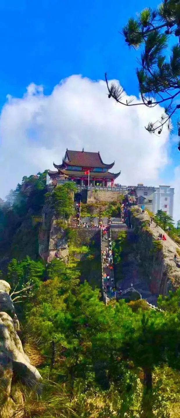 九华山群峰竞秀,怪石林立,九大主峰如九朵莲花,各具神韵,因此有“莲花佛国”之美称。云海、日出、雾淞、佛光等自然奇观相伴,气象万千。