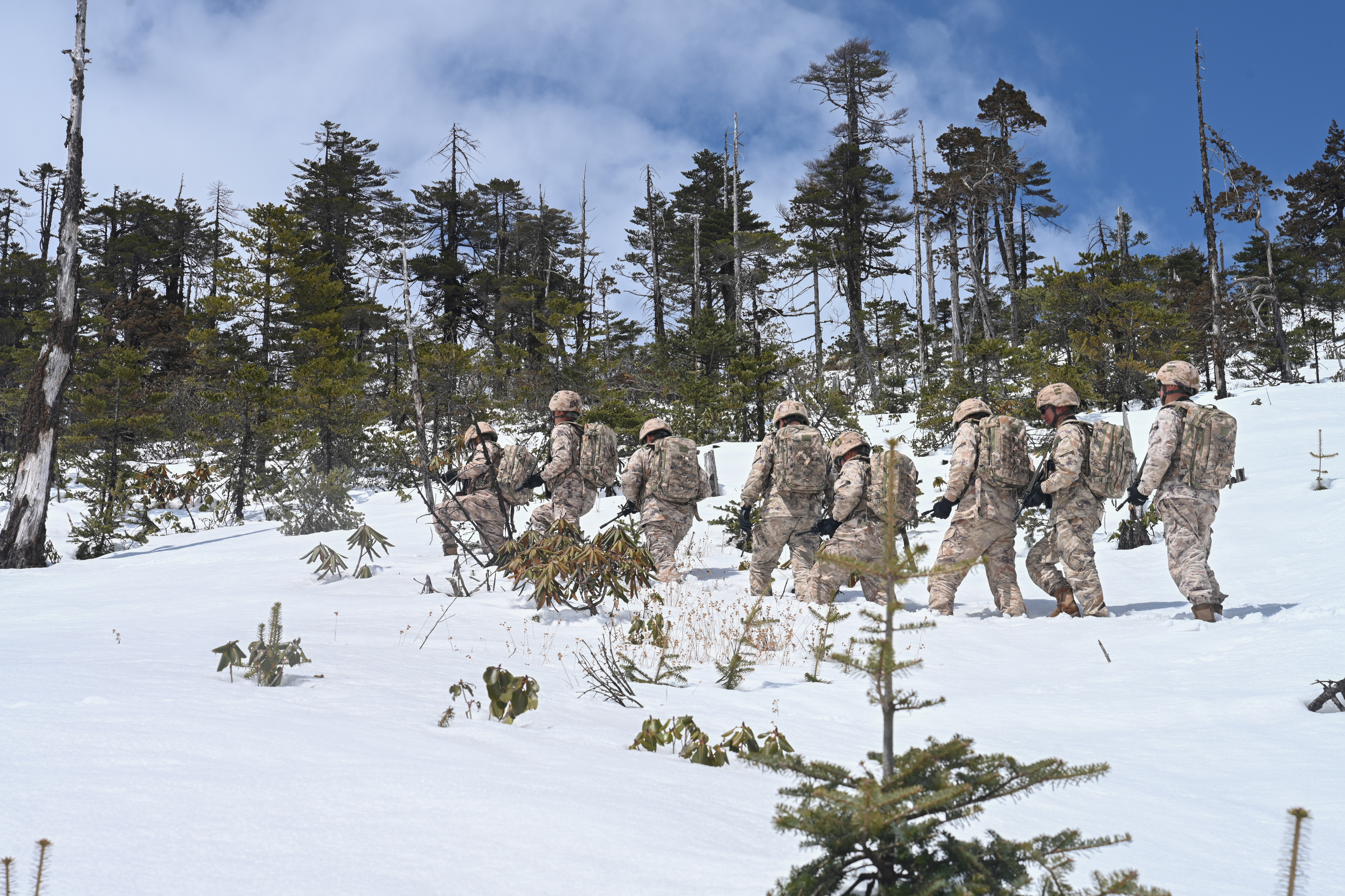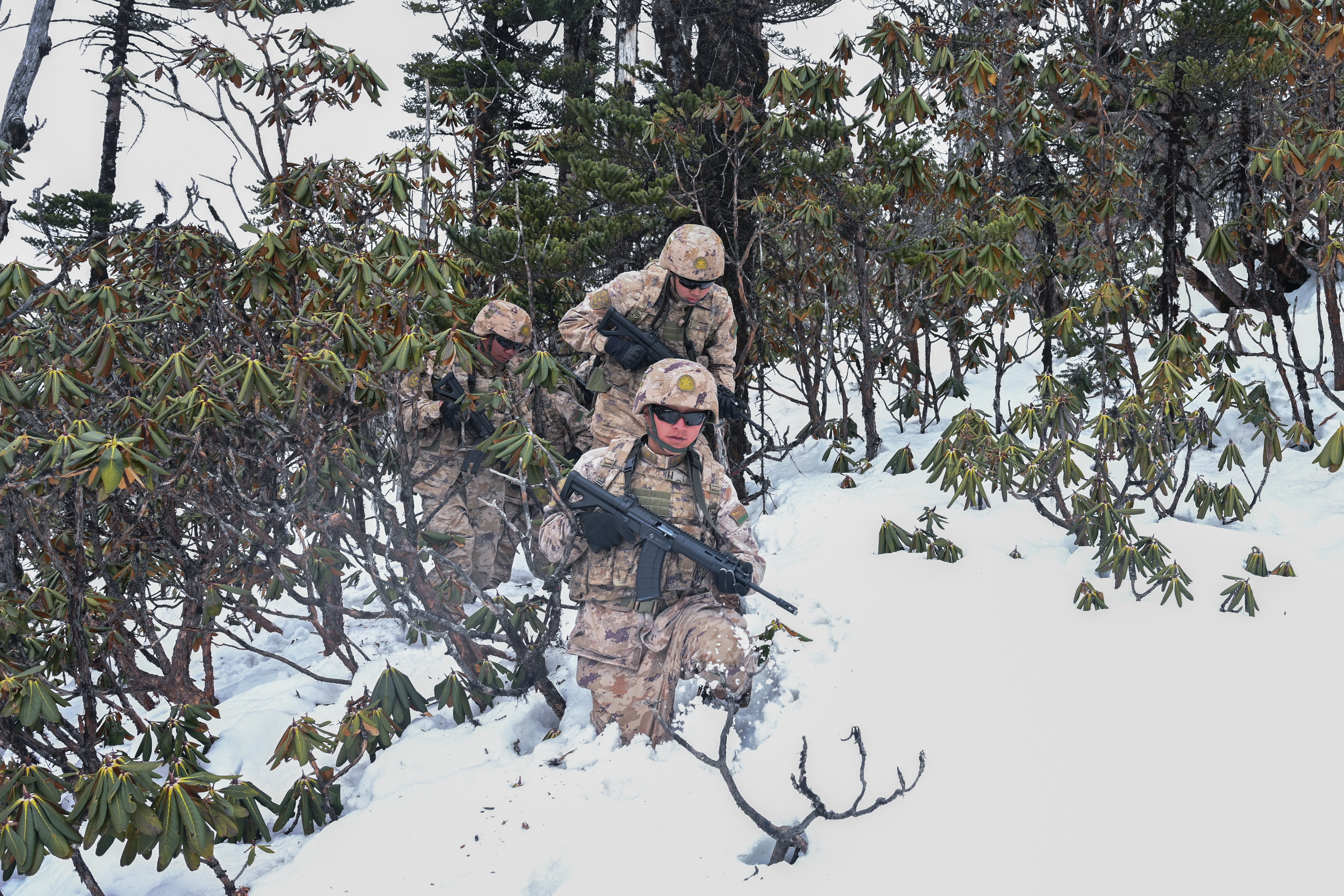 西藏军区“墨脱戍边模范营”巡逻官兵:我站立的地方是中国,我用生命捍卫守护,绝不把领土守小了,绝不把主权守丢了,边防有我在,祖国请放心。(记者颜葵;记者站:马军、 李金涛 、杨振坤 、张竣 、王辉 、王稚量)