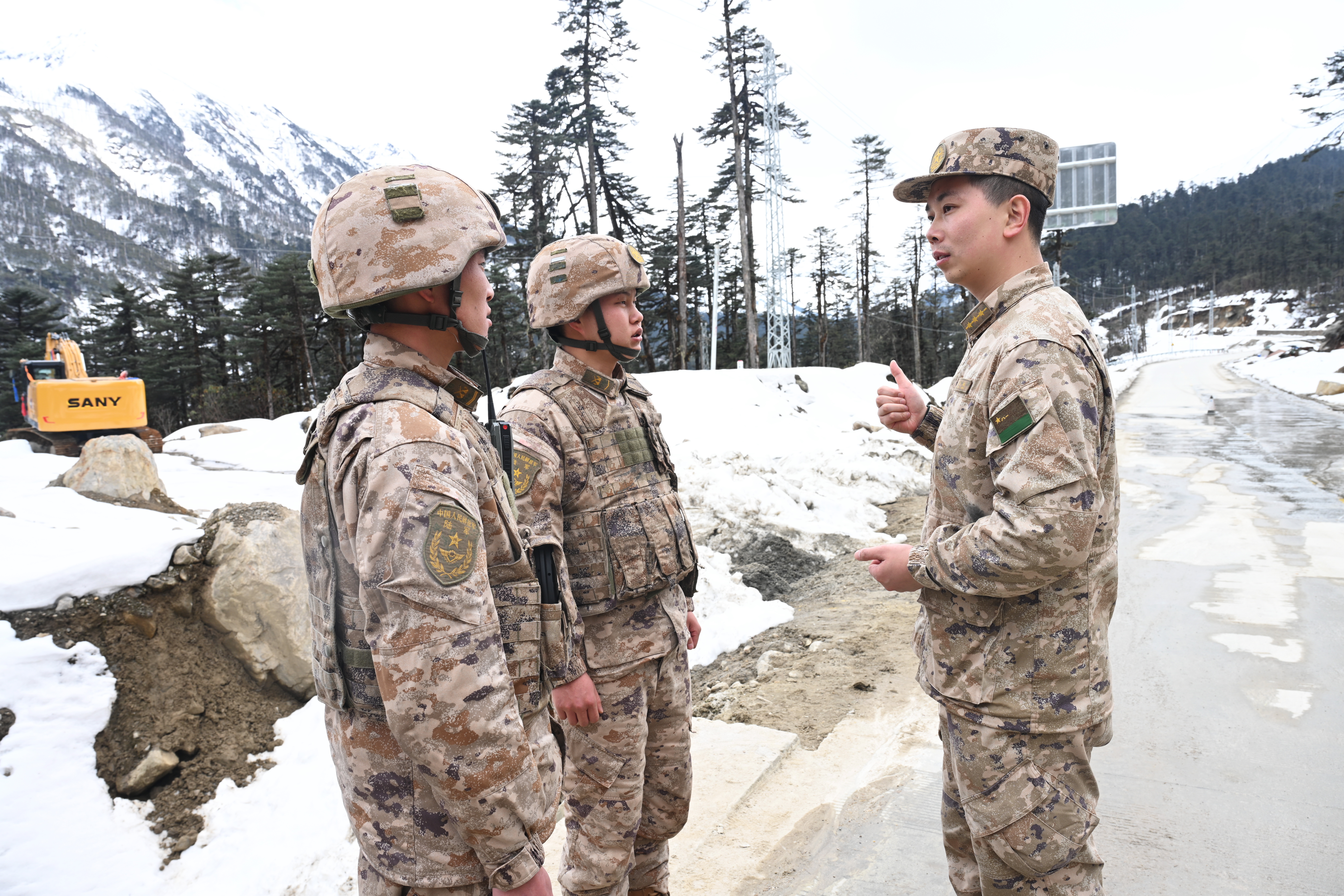 西藏军区某团 海金航:习主席在这个解放军和武警代表团全体会议的时候,给大家这个作出的这个指示当中也提了,比如说我们这个新质生产力现在科技赋能这一块,这个东西肯定大家深有体会啊,我们之前刚到这个点的时候,“老一点的”王川他们都知道,刚来这是什么样子,不管是从我们的各项条件也好,还是我们管控的方式也好,都是徒步嘛,徒步到这个点上,然后徒步往前走,但你看我们现在,你看我们这个车,巡逻车现在开到这来。