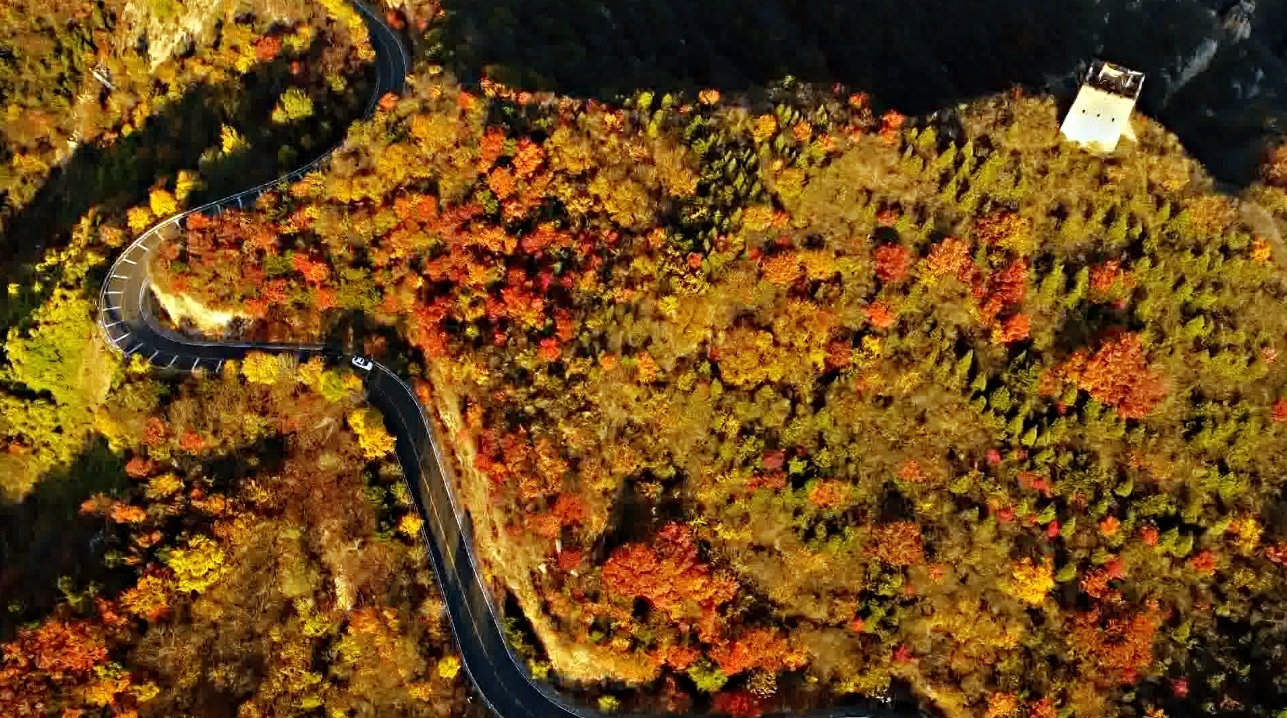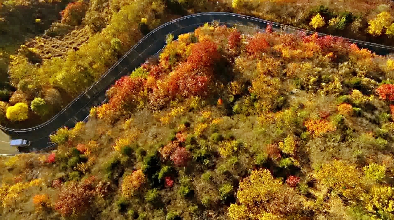 围绕密云水库110公里长的环湖路两侧,秋意斑斓,景色如画。沿环湖公路绕行,可以看到整个密云水库,犹如一幅色彩绚丽的山水画卷。