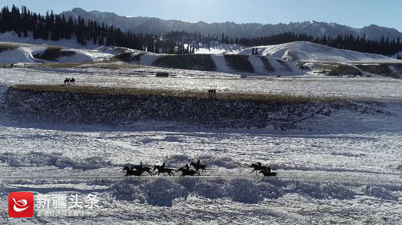 精彩的叼羊比赛吸引了参加“冬恋那拉提·水墨画中游”百人体验活动的全国摄影师,手持稳定器、单反、航拍飞行器,摄影师们使出浑身解数想要记录下难得的瞬间。