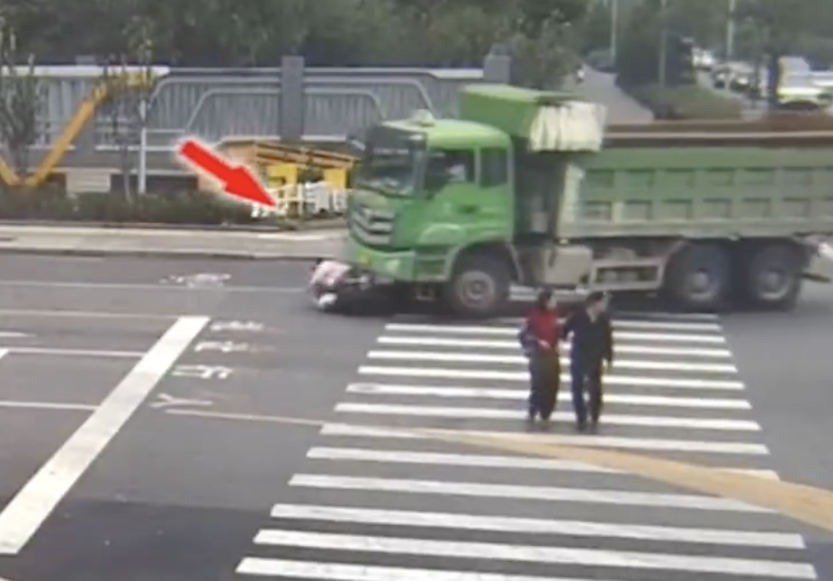 瞬间连人带车被卷入车底