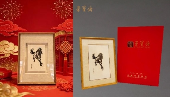 荣宝斋推出木版水印《小墨马》,作品融汇西方写实技法与中国笔墨意趣,生动传递马的精神气韵。同时,品牌开设非遗体验课,供消费者预约亲手印制马年主题画作,体验木板水印技艺。用户表示“体验课加深了对非遗价值的理解”。