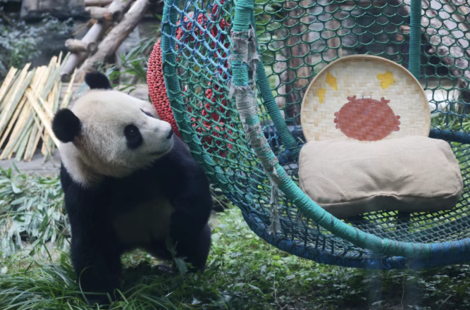 据悉,按照大熊猫轮换展出制度,之后大熊猫“萌大”“福将”将在奥运馆南侧展厅轮换展出,大熊猫“吉年”“点点”将在奥运馆中间展厅按周期轮换展出。