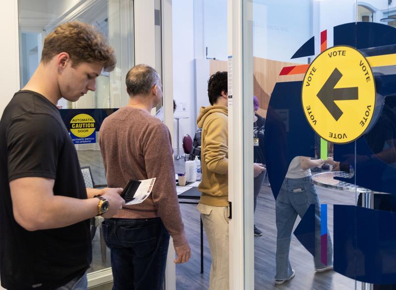 4月28日,选民在加拿大多伦多一处投票站排队投票。新华社发(邹峥摄)