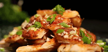 最后撒入小香葱段和一层密密麻麻的白芝麻,出锅改刀切成扇形小块。