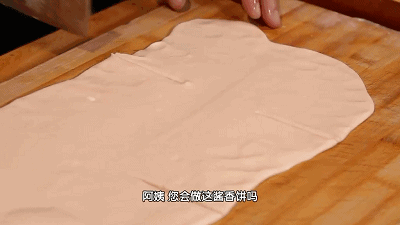 只要把醒发好(或摔打好)的面团擀成大饼,切块对折,用擀面杖擀至上劲柔和,然后上锅煎至金黄,刷上一层酱料就能搞定。