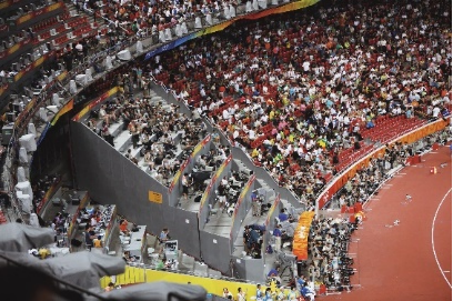 看台上搭建的位置是拍摄开幕式运动员进场的最佳位置,而地沟是拍摄田径运动员冲刺的最佳位置
