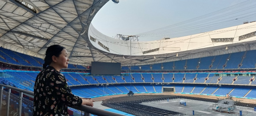 赵迎新因为具有丰富的体育摄影经验和媒体专业资格,被选为2008年北京奥运会的摄影运营官,她也成了奥运史上担任这个“官”的唯一女性。今年的7月份拍摄赵迎新的专题片,我们又来到她曾经战斗过的地方----鸟巢。