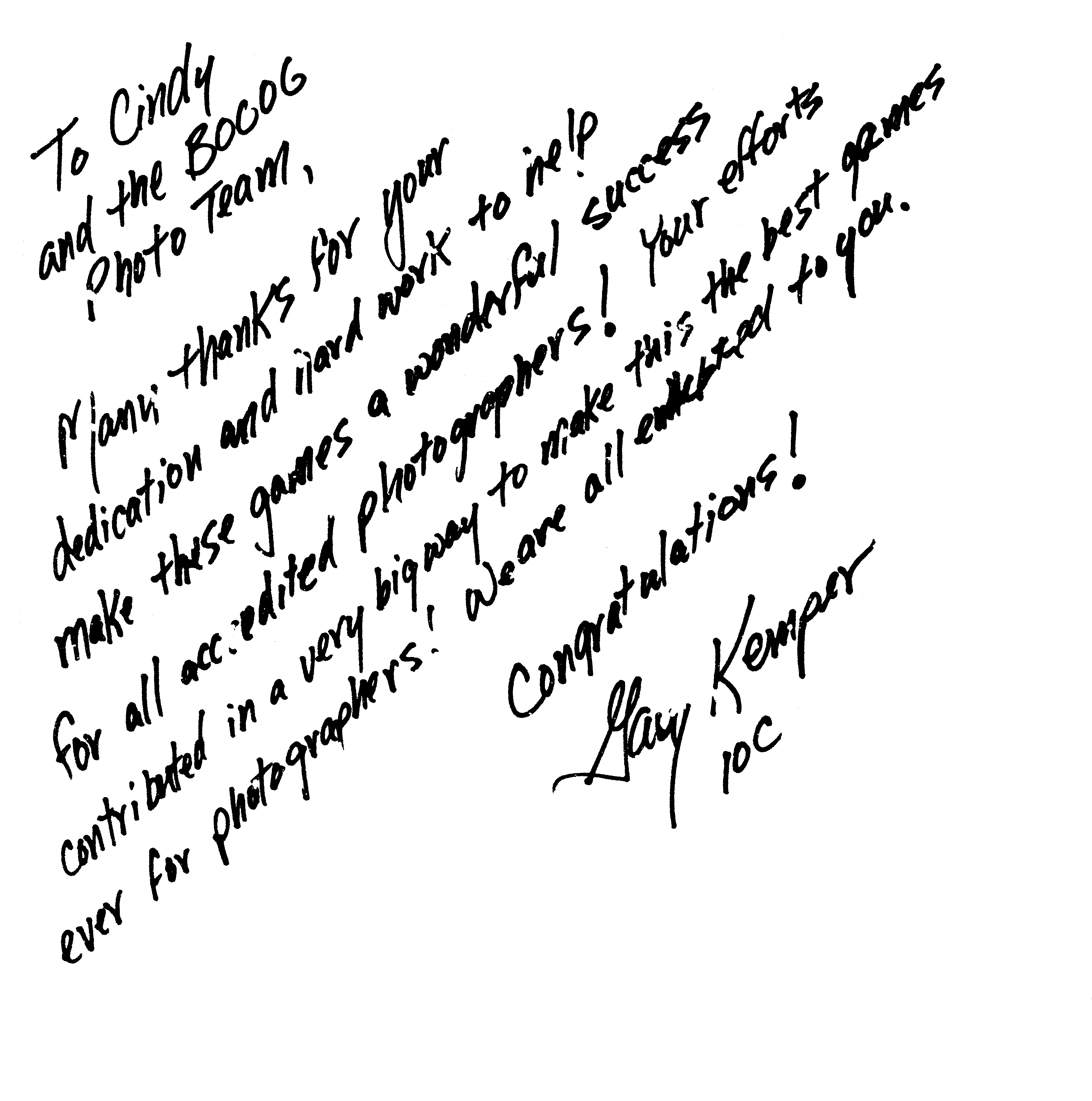 非常感谢你们的奉献和辛勤工作,为所有摄影记者创造了本届奥运的精彩。你们的努力让这届奥运会成为摄影记者最棒的一次盛会。再次恭喜!