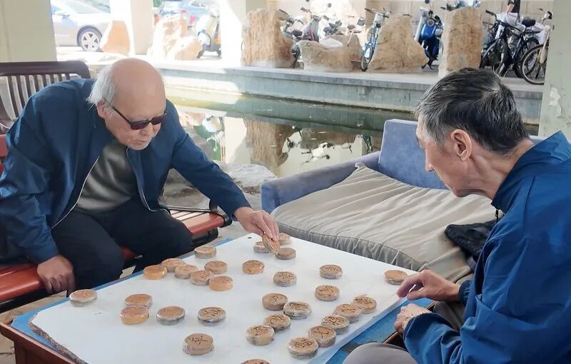 小区里下棋等的大爷/记者拍摄