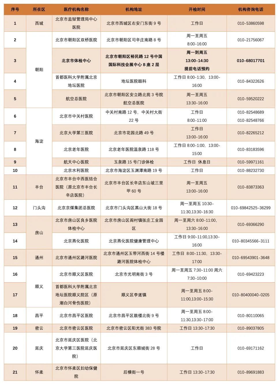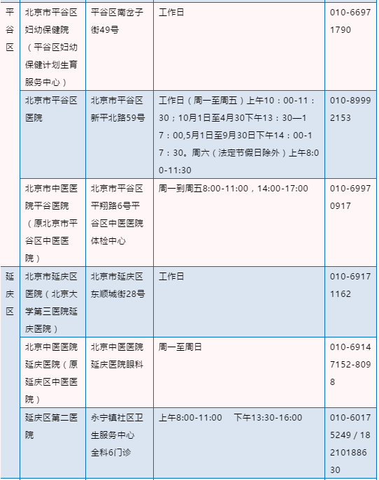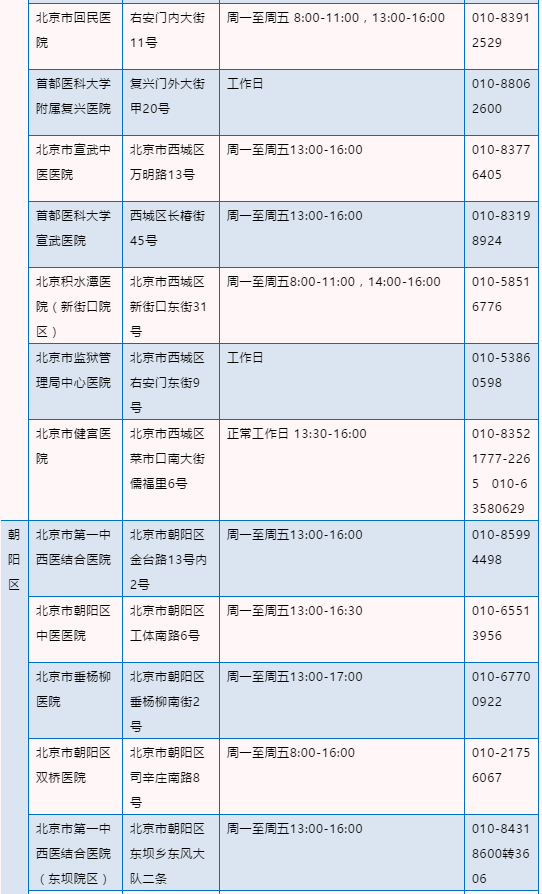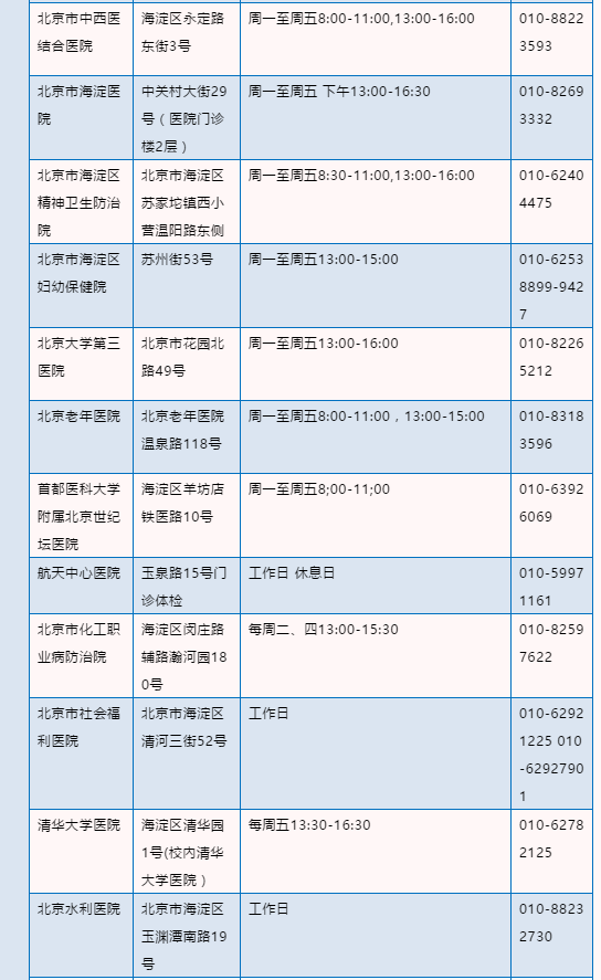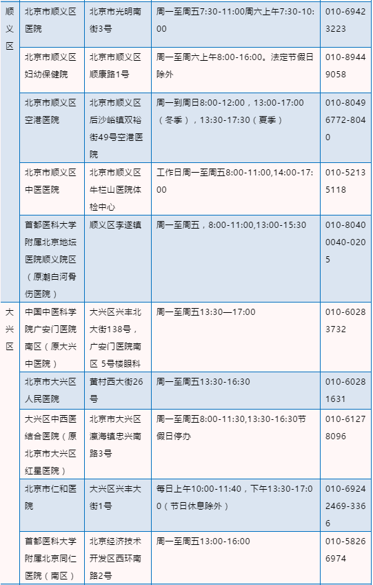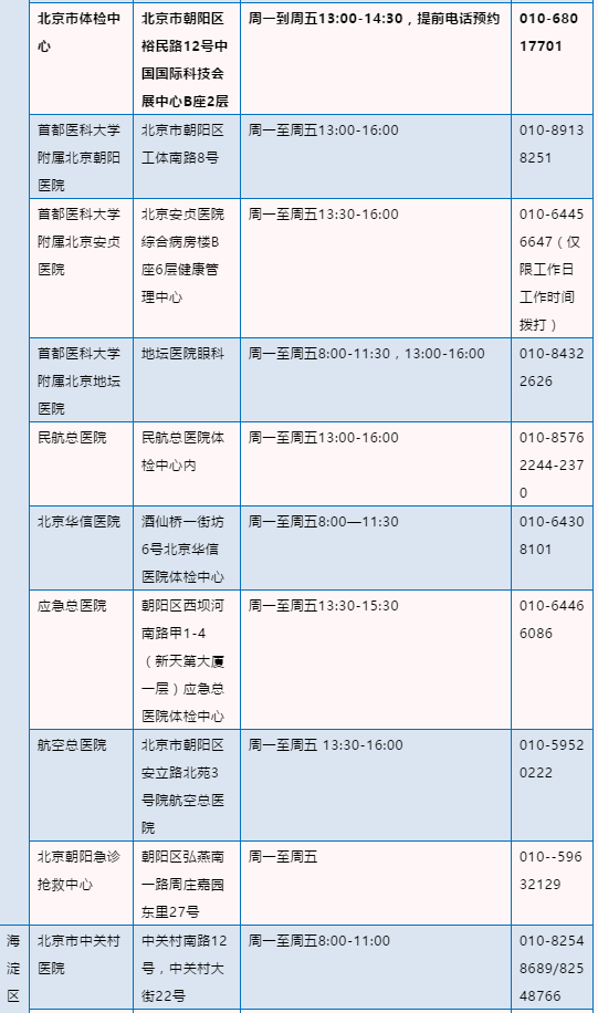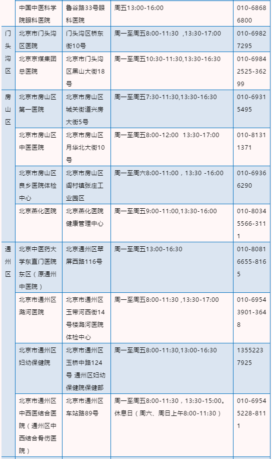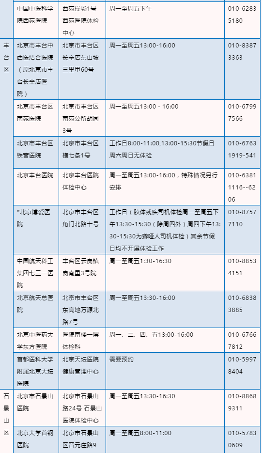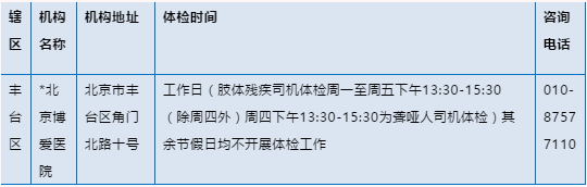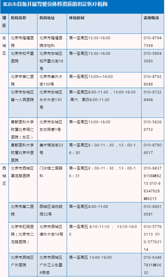 北京驾驶员体检医疗机构名录