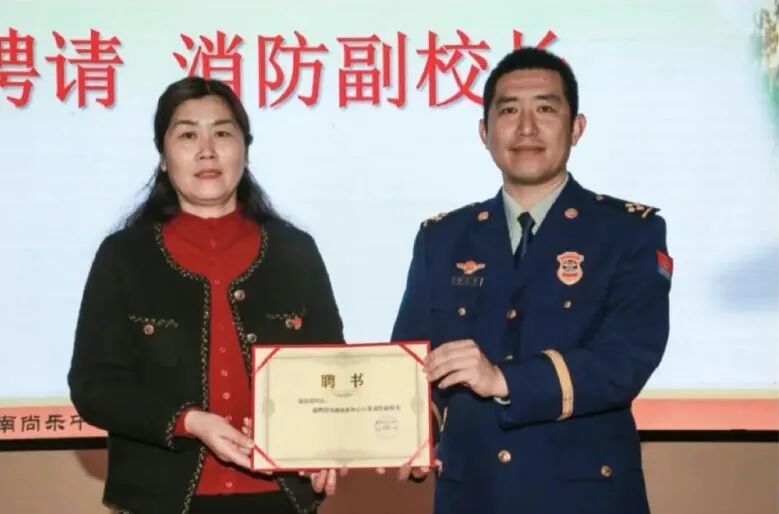 仪式上,双方领导共同为“消防副校长”代表颁发了聘书。