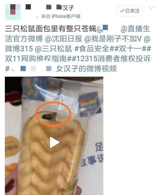 近日,中国食品报旗下媒体“华夏饮食”报道称,沈阳的车女士双十一期间买了“三只松鼠”的面包,打开后竟发现包装袋内有一只完整的苍蝇。三只松鼠客服称赔偿车女士300元,车女士表示不接受。