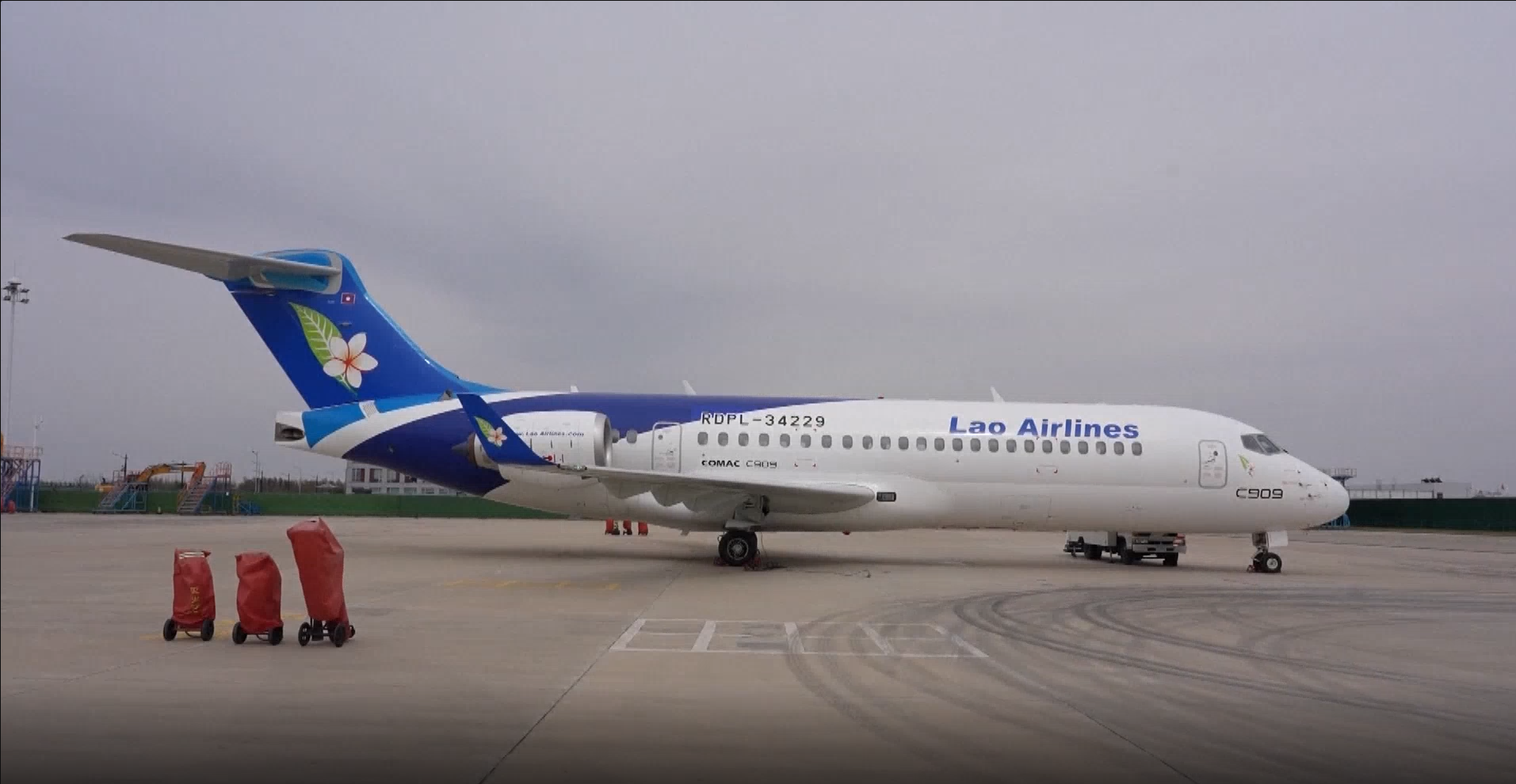 这架飞机是上个月由中国商飞公司向老挝航空公司交付的首架C909飞机,也是中国的喷气式客机首次进入老挝市场。
