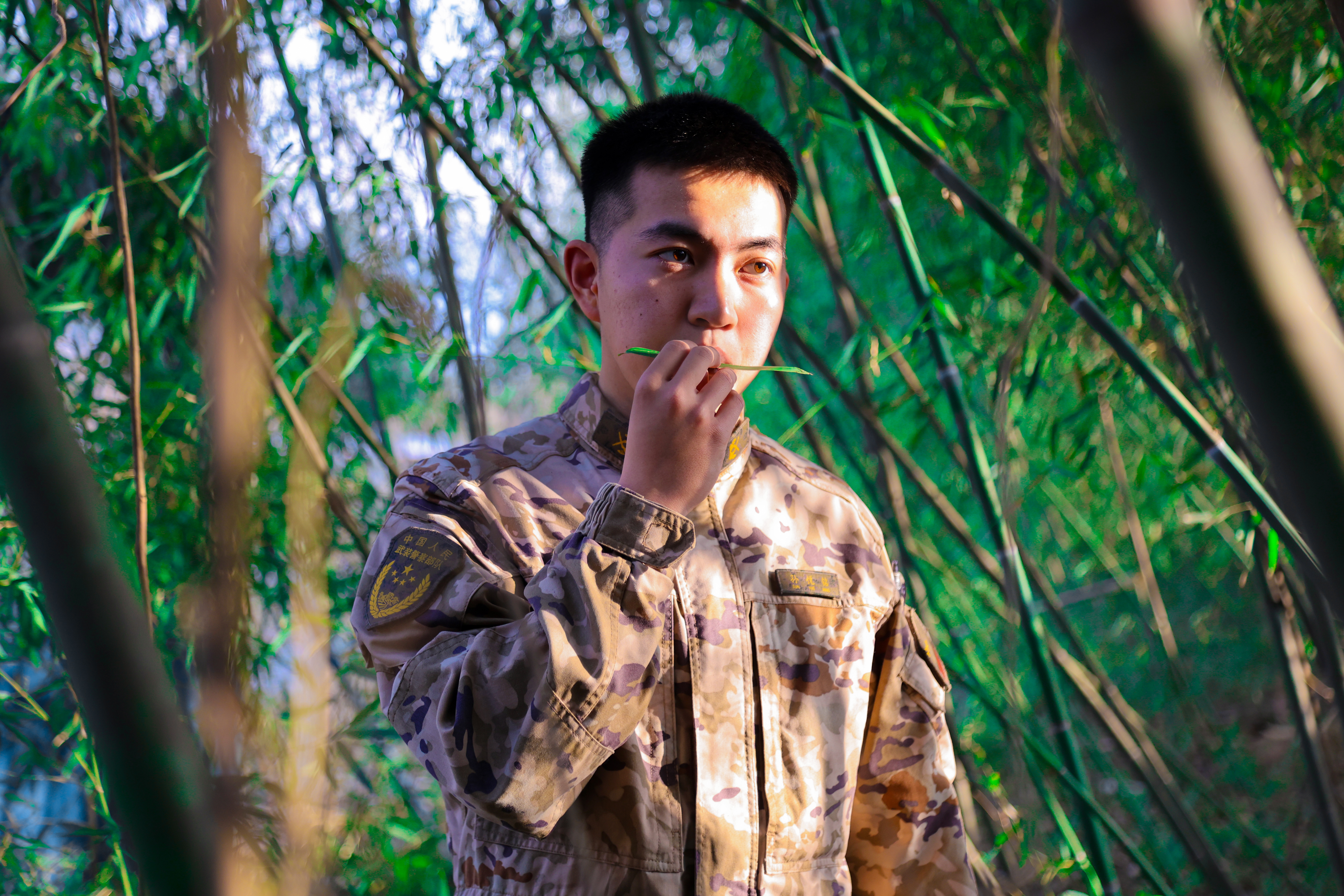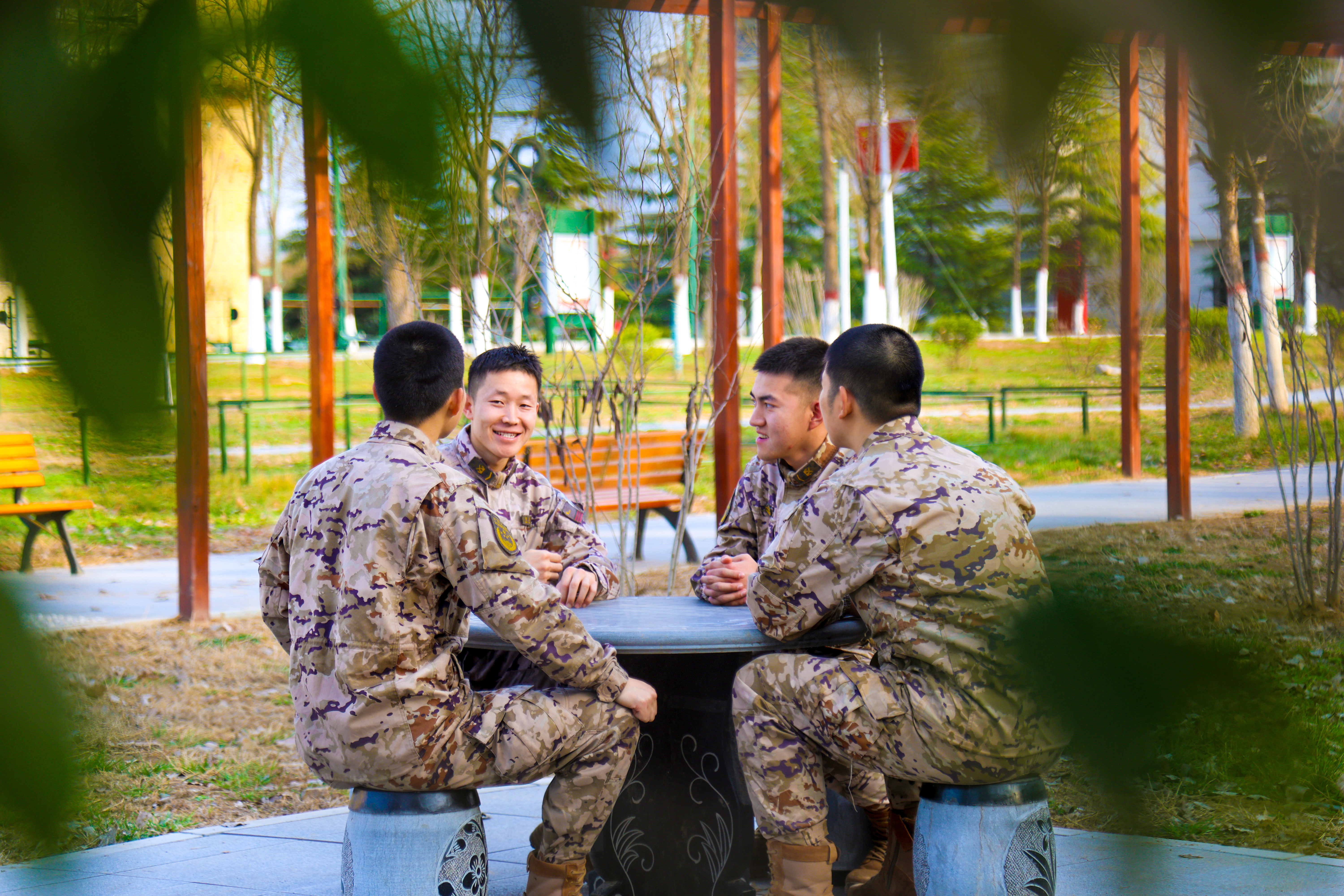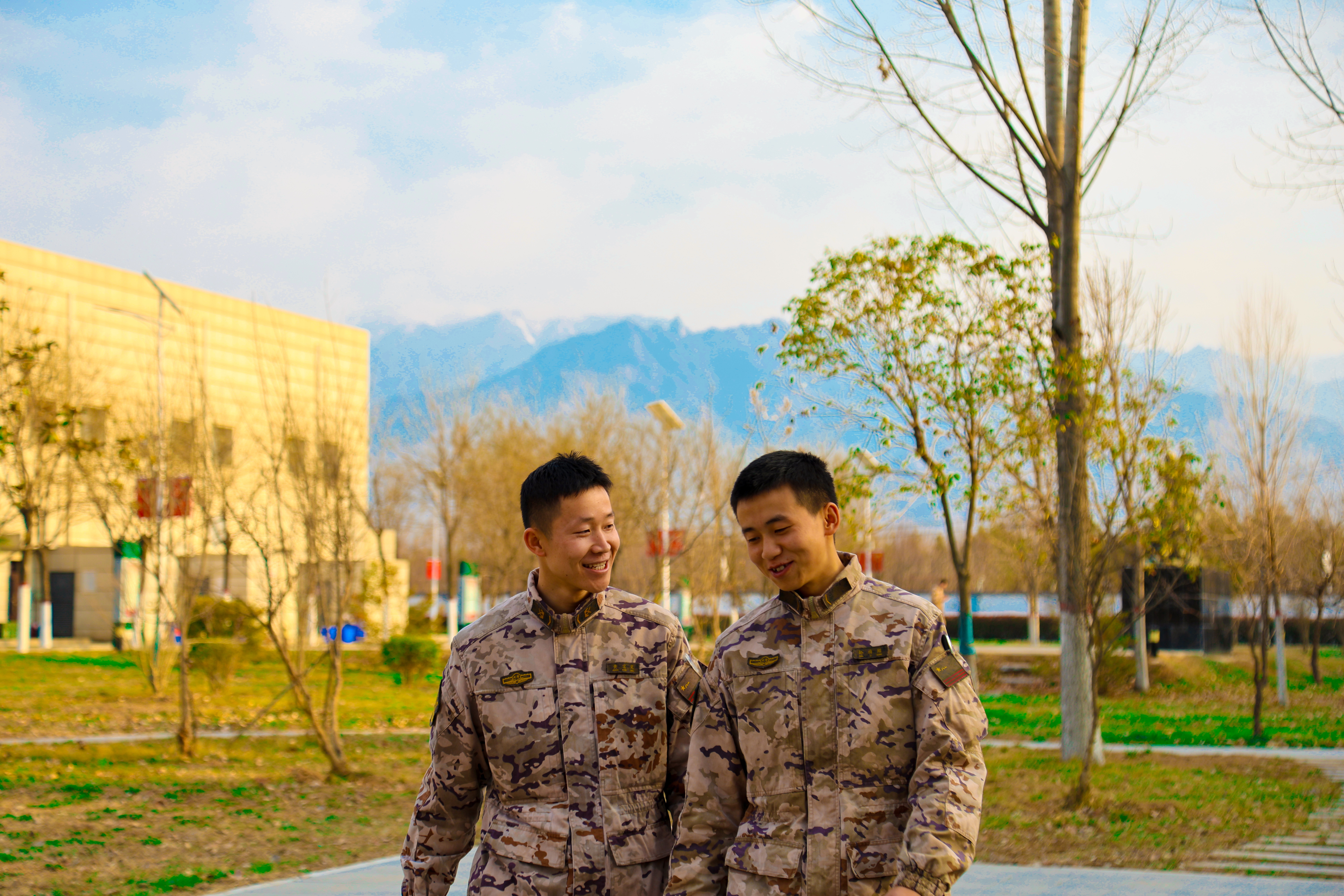 快来看!军营迷彩与绚烂春色融为一体