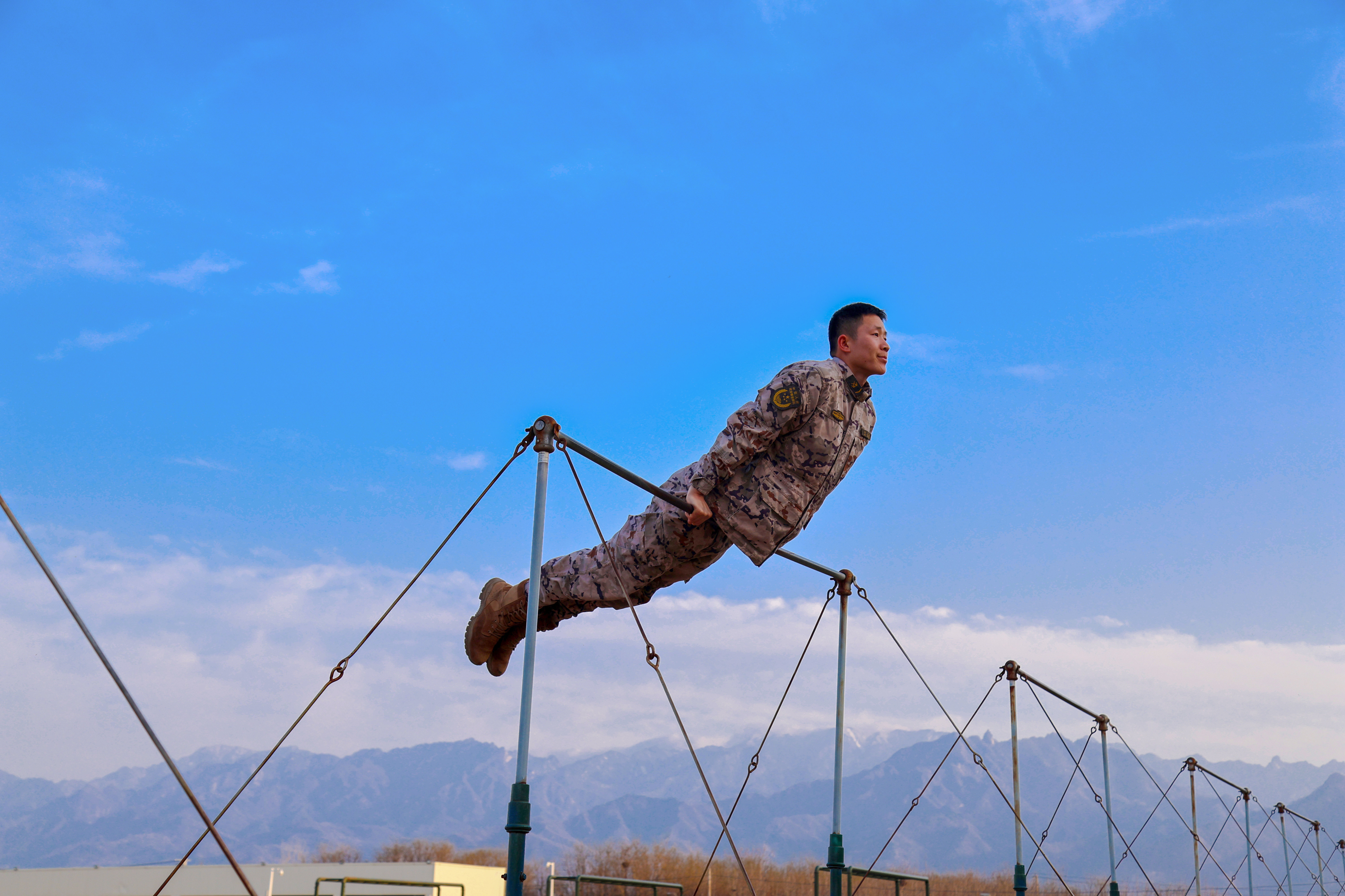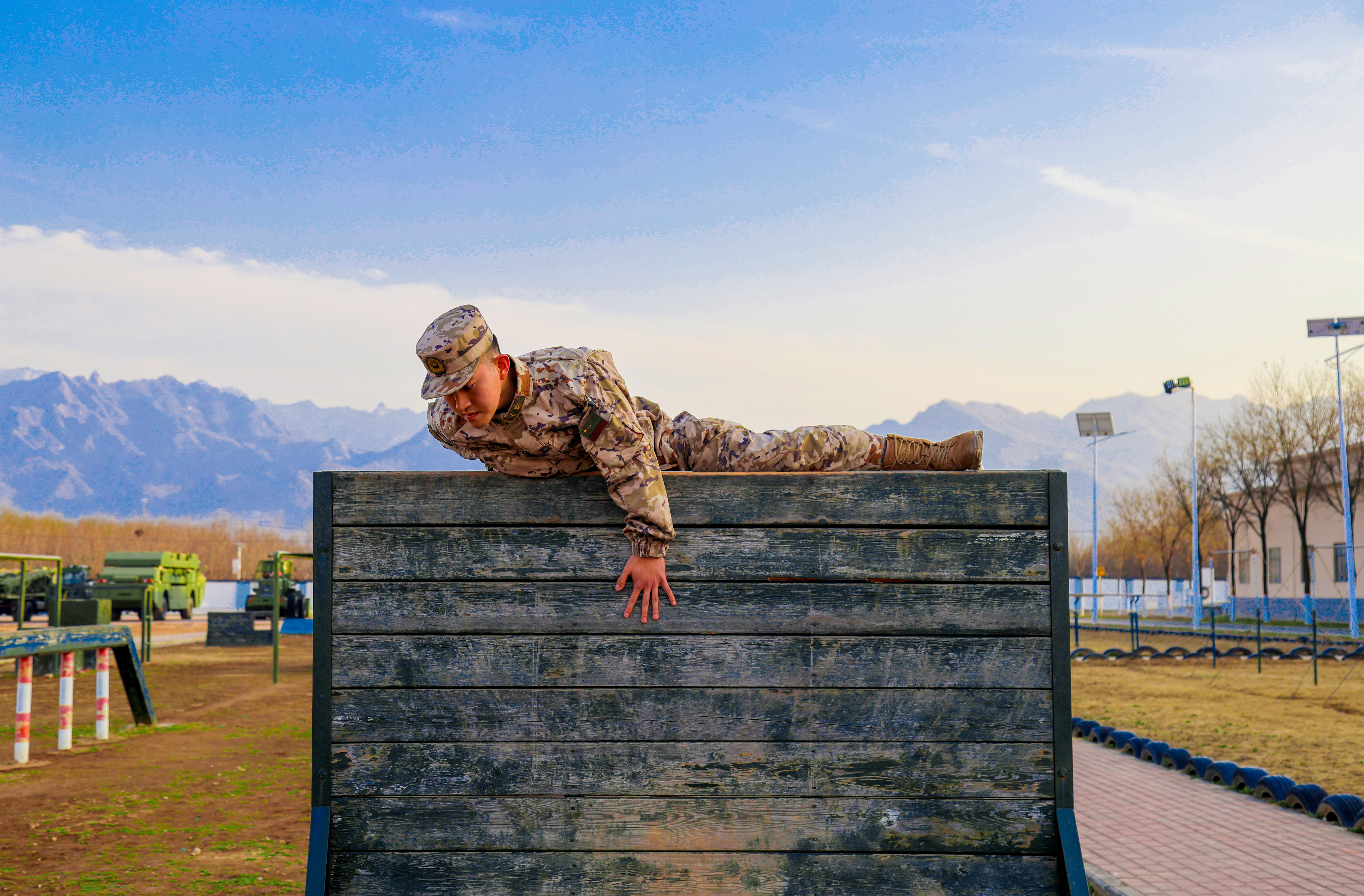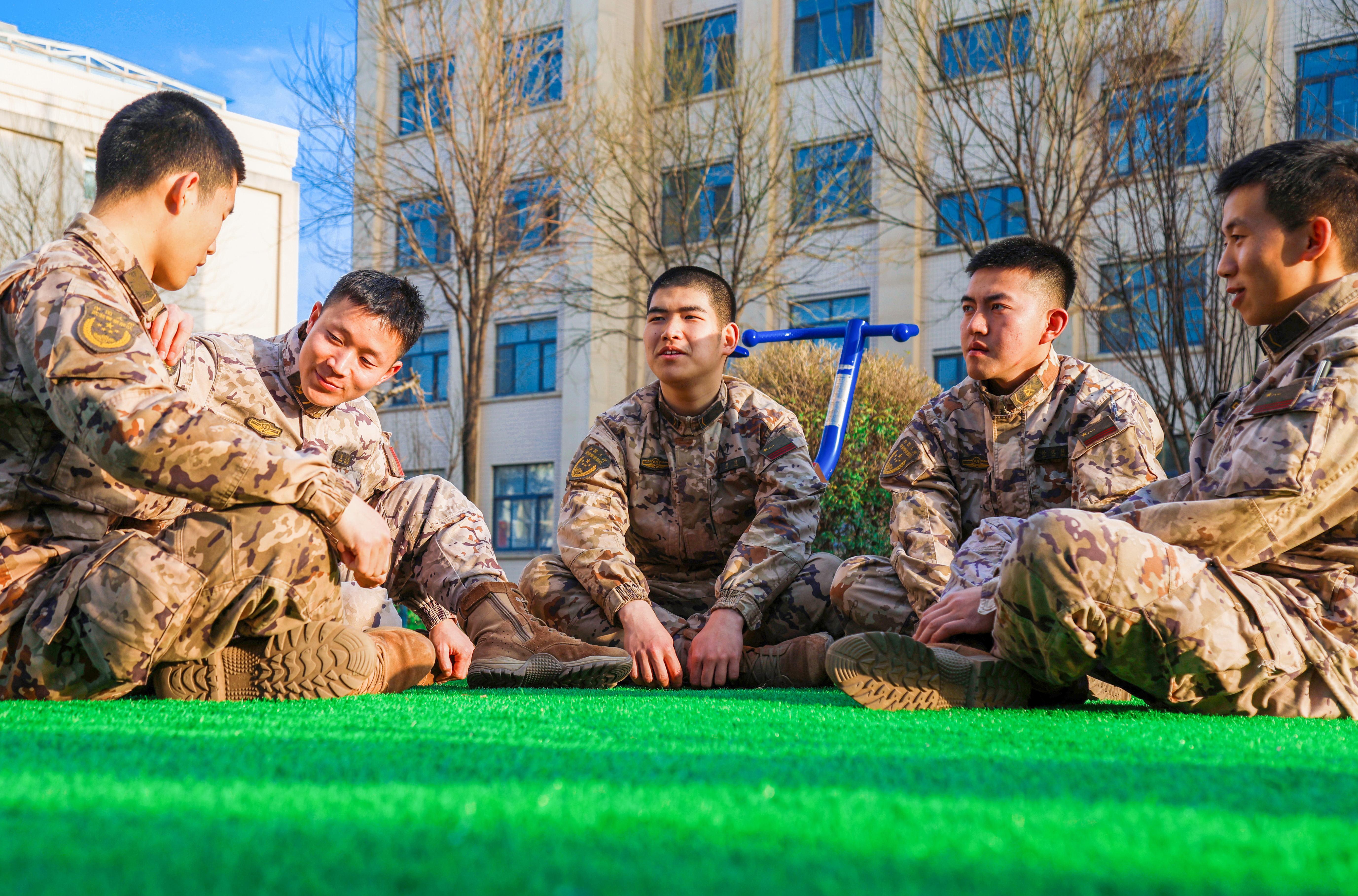 快来看!军营迷彩与绚烂春色融为一体