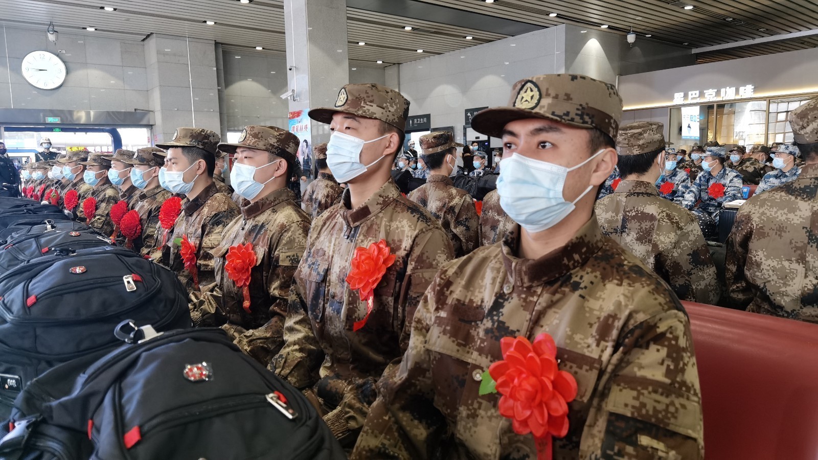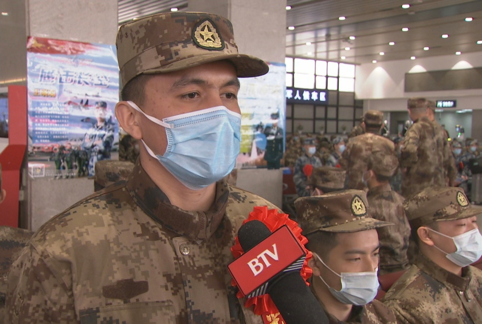今天上午,北京西站候车室,来自北京工商大学的维吾尔族大二学生安外尔·柯尤木整装待发。为了走进军营,他从大学一年级就开始报名参军,如今终于实现了报国梦想。