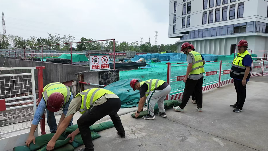 8月4日9时45分,区气象局升级发布暴雨红色预警信号。记者在项目建设现场看到,工人正在对地下室、排水点位等进行巡查。工人在过道口、首层门口砌筑挡水台,配合防汛沙袋提高挡水效果。同时在易积水点位安装抽水泵,可根据水量自动抽水。“项目部实行项目经理24小时带班制度,目前项目已经全面停工,同时做好临时电路排查工作。”北京城建分子探针项目生产副经理郑华峰说。“工人整体安置在生活区,专人进行值守,确保有紧急情况能快速转移和安置。”