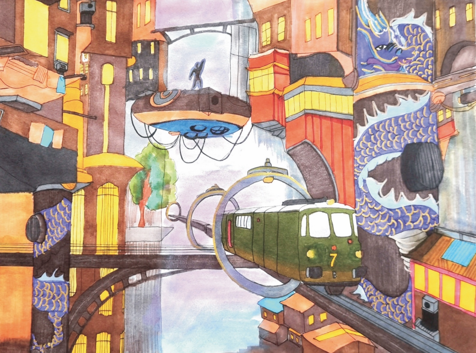 图为《未来城市》北京交通大学附属中学第二分校温照卿作品。