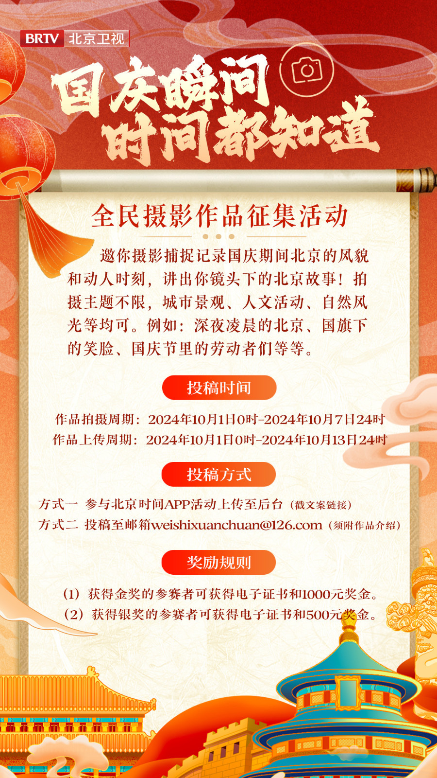 “国庆瞬间 时间都知道”全民摄影作品征集活动邀你摄影捕捉记录国庆期间北京的风貌和动人时刻,讲出你镜头下的北京故事!
