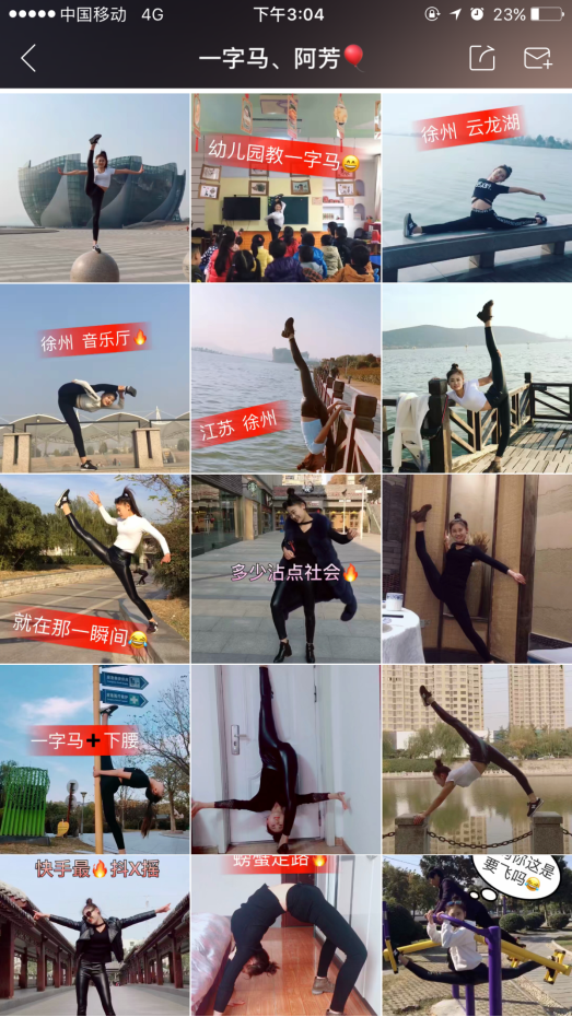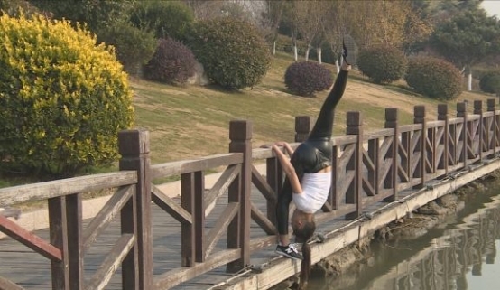 诙谐幽默的标题搭配一幕幕高难度动作,让人瞠目结舌。我们了解到,这身怀绝技的妹子是咱们徐州人。在某直播平台上,徐州这名软妹子在全国热度排第四,目前坐拥上万粉丝,这异于常人的绝技究竟是天生的还是后天培养的?今天上午,我们在云龙湖畔见到了她。