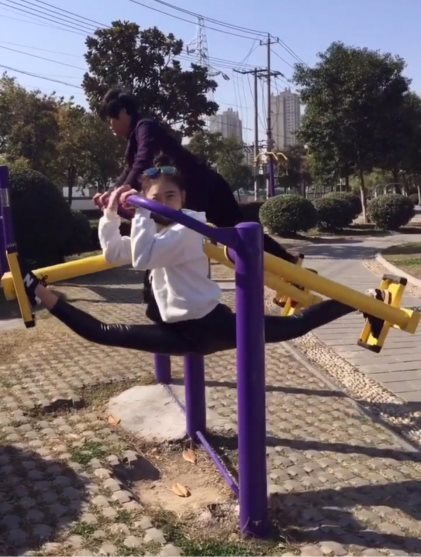 一口气完成的自创动作——360度旋转"一字马",一定要给一个大写的服气。