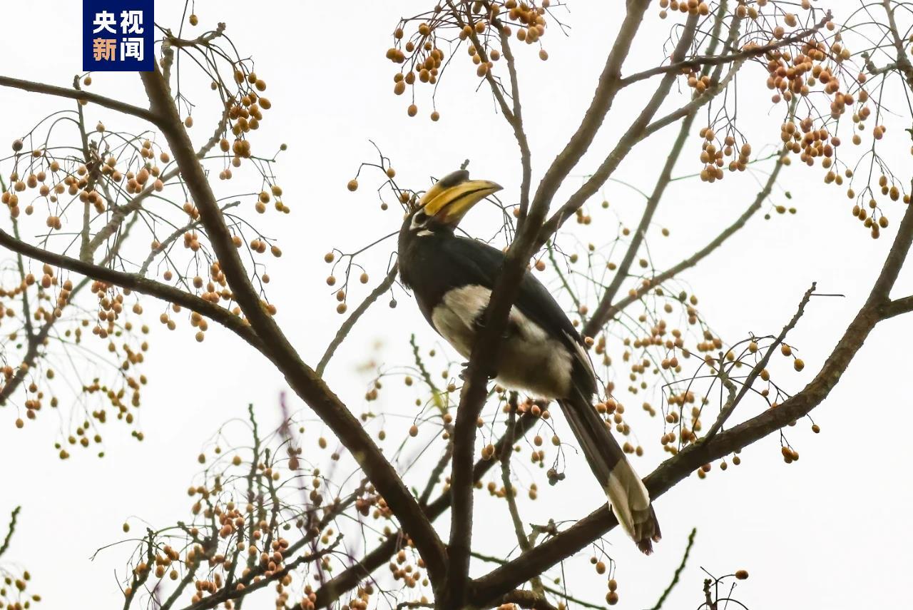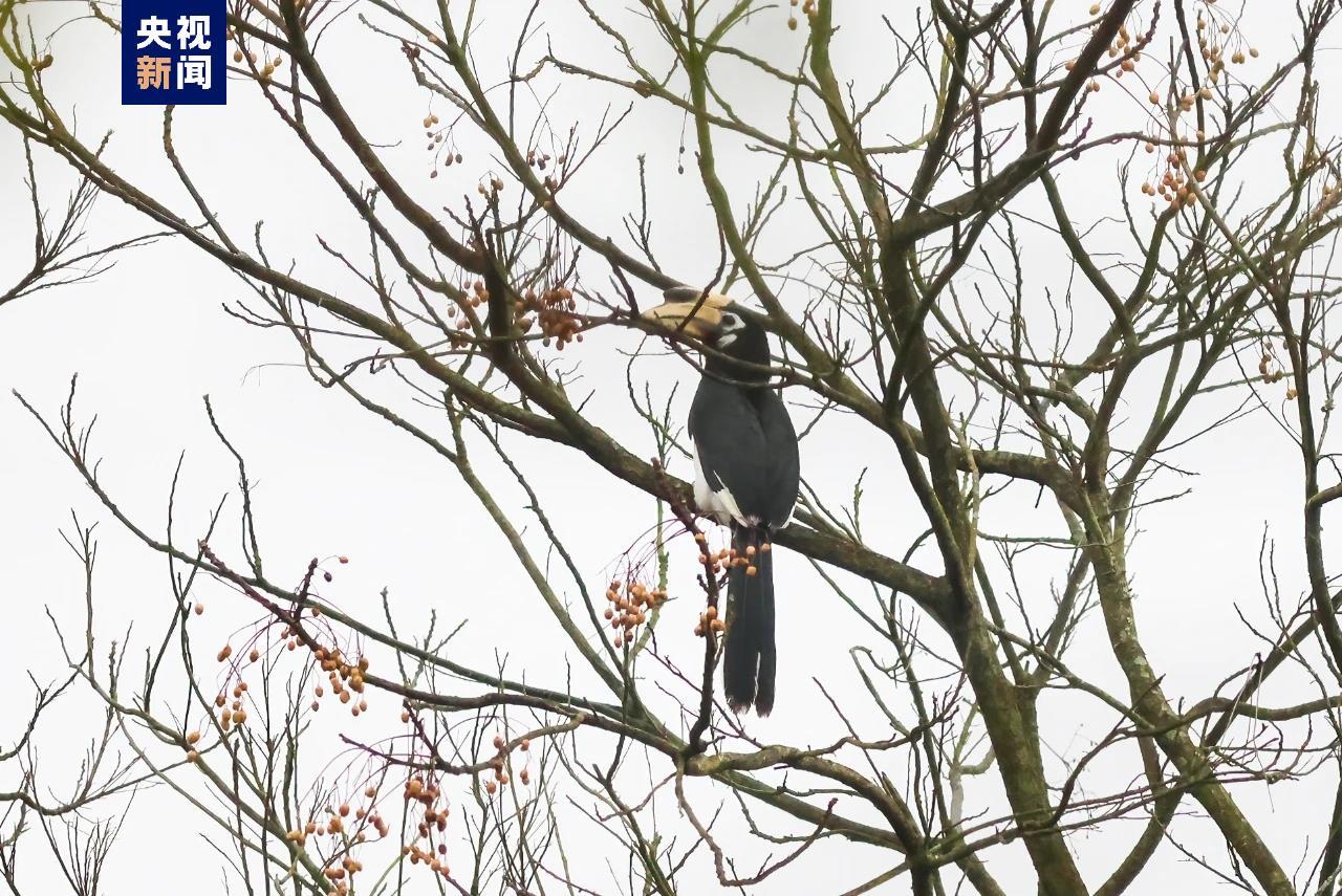 据悉,冠斑犀鸟其实属于热带鸟类,全球共有54种犀鸟,冠斑犀鸟是我国仅有的5种犀鸟之一,目前已经从二级保护升级为一级保护,带有黑斑的大嘴是它醒目的标志。