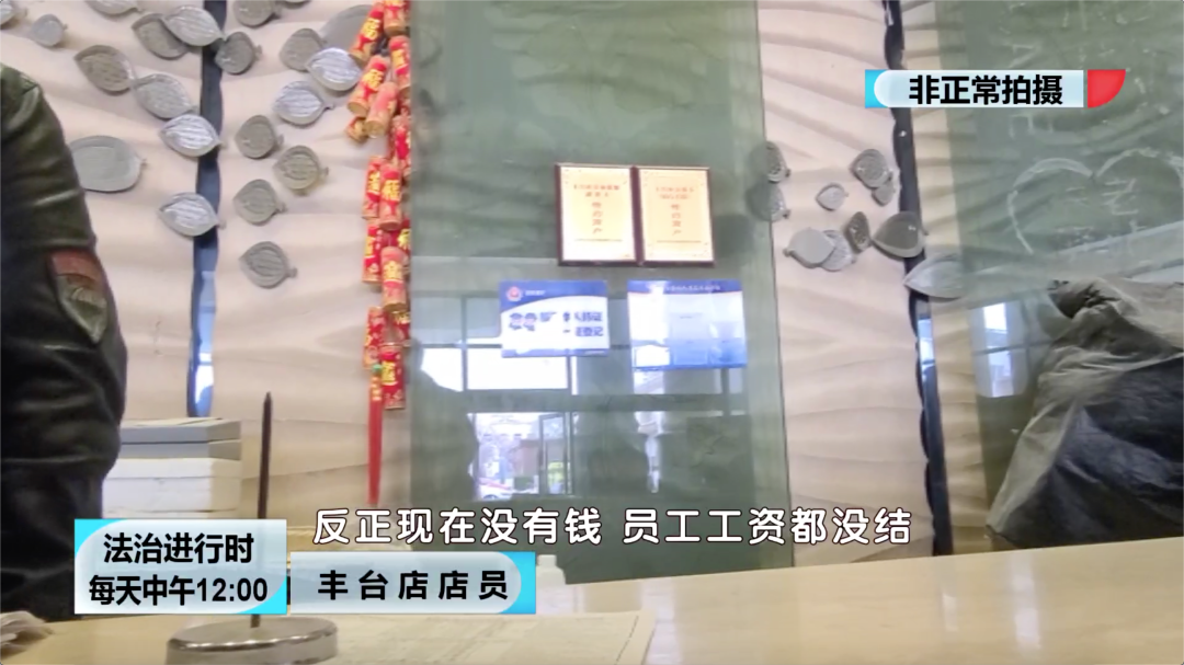 记者又跟随王女士来到了权金城丰台店,这里同样也在装修。店内的员工表示,自去年年底开始,这家店就不与权金城合作了,听说停止合作的原因是公司已经没钱了,现在处于破产状态。