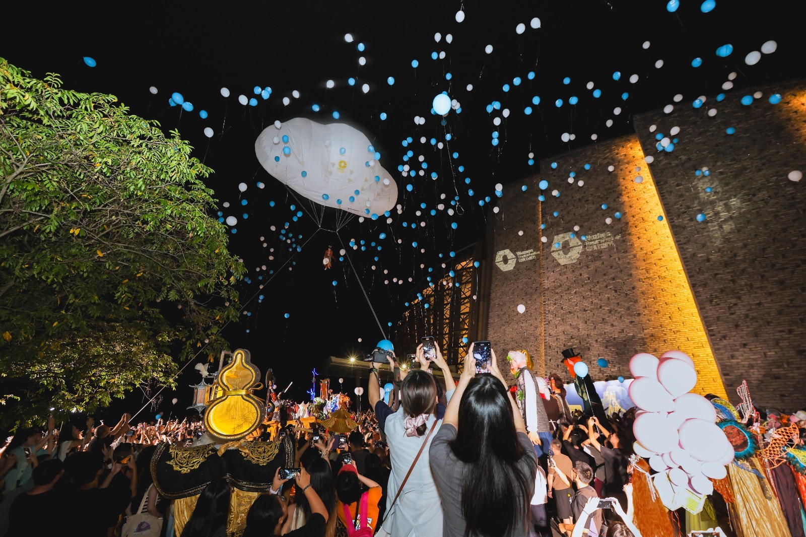 开幕首日,白昼的乌镇已化身为无界的舞台,古镇嘉年华各色演出轮番登场,热情的观众充盈街巷,掌声与欢笑不绝于耳;至傍晚时分,开幕巡游的队伍穿梭于西栅的街巷间,笑语与光影相映生辉,绘出一幅流动的庆典画卷;当队伍行至乌镇大剧院,承载着欢乐和祝愿的气球腾空而起。19时的乌镇大剧院内,开幕大戏导演、德国著名戏剧大师卡琳·拜尔、与乌镇戏剧节发起人陈向宏、黄磊、赖声川、孟京辉等一同敲响开幕大锣。