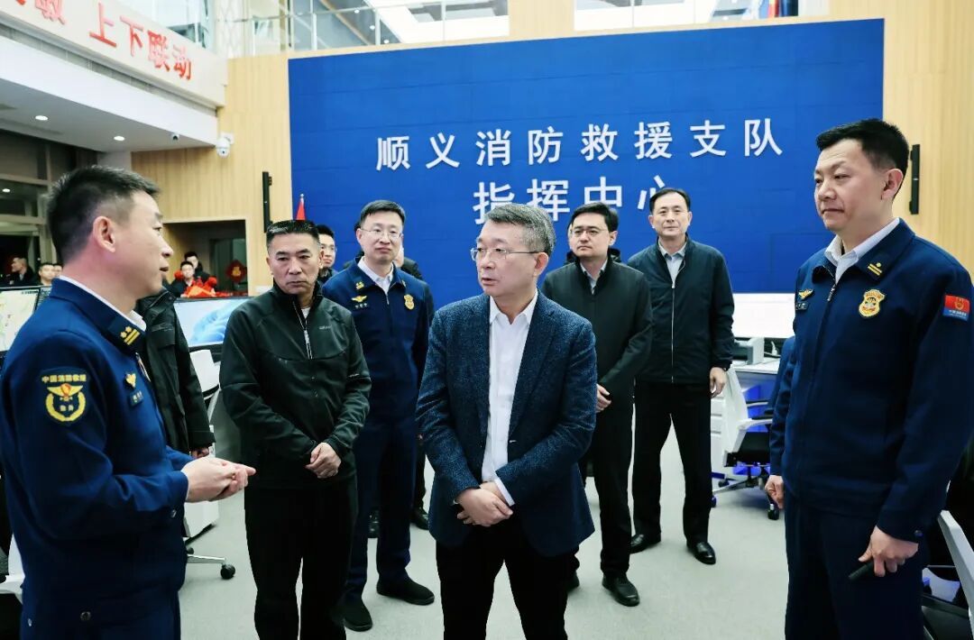 晚上九点,顺义区消防救援局调度指挥中心内,视频系统实时更新全区各重点点位消防力量部署情况,接警调度工作有条不紊,各前置备勤力量严阵以待。龚宗元听取了全区消防安全整体情况汇报,详细询问了接警处置流程、应急预案制定等情况,并慰问一线消防救援人员。他强调,节日期间用火用电用气增多,风险隐患交织叠加,消防安全工作须臾不可放松。要保持高度戒备,强化隐患排查、值班值守和应急处置,做好重要区域和重点点位消防力量前置备勤,坚决守牢消防安全防线。坚持极限思维,把困难估计得更充分一些,把风险思考得更深入一些,以工作的确定性应对风险的不确定性,确保各项应急预案衔接紧密、高效运转。