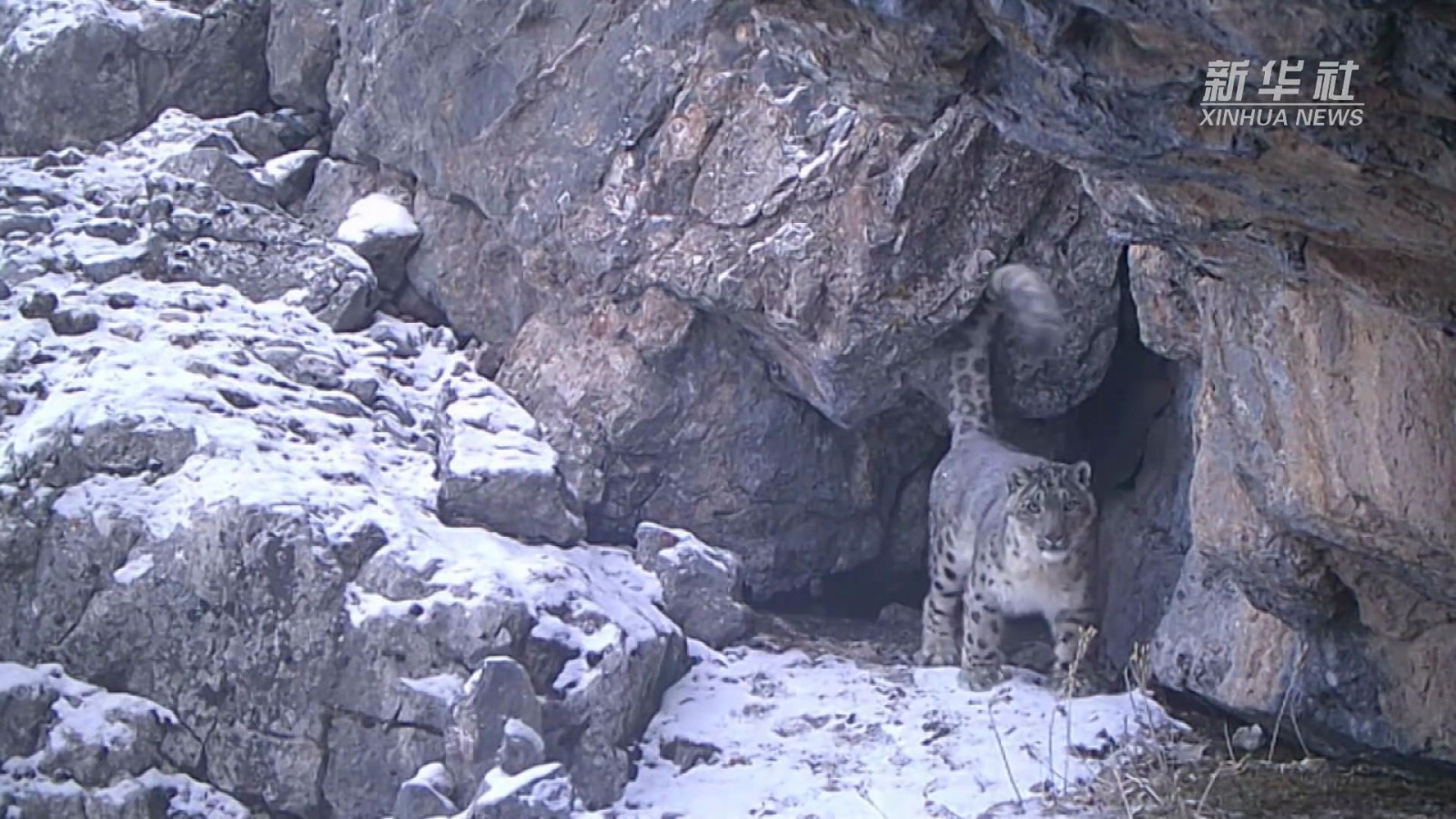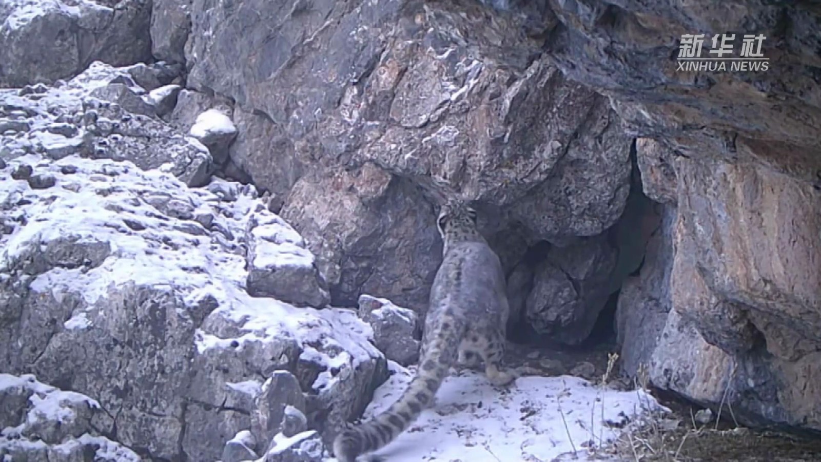 视频中,这只雪豹巡视着领地,并留下了自己的气味标记。据研究人员判断,这是一只雄性成年雪豹。天祝县地处祁连山东段,这是当地第一次记录到野生雪豹的清晰影像。