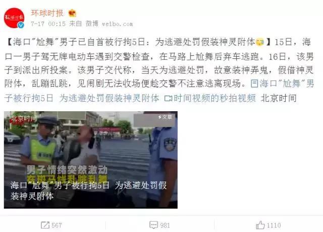@梁芳舒-:我来给大家翻译一下下,交警叫他下车,他说他要干活没有干其他事,交警就推车,他说上次你们推车才把我推摔,脚都受伤了现在又想再推我受伤一次吗,交警说那你这样说你上次都犯过一次现在还犯,交警就直接推车了。其实这男的不是要跳舞,是要假装公祖(海南一种风俗)上身吓一下交警