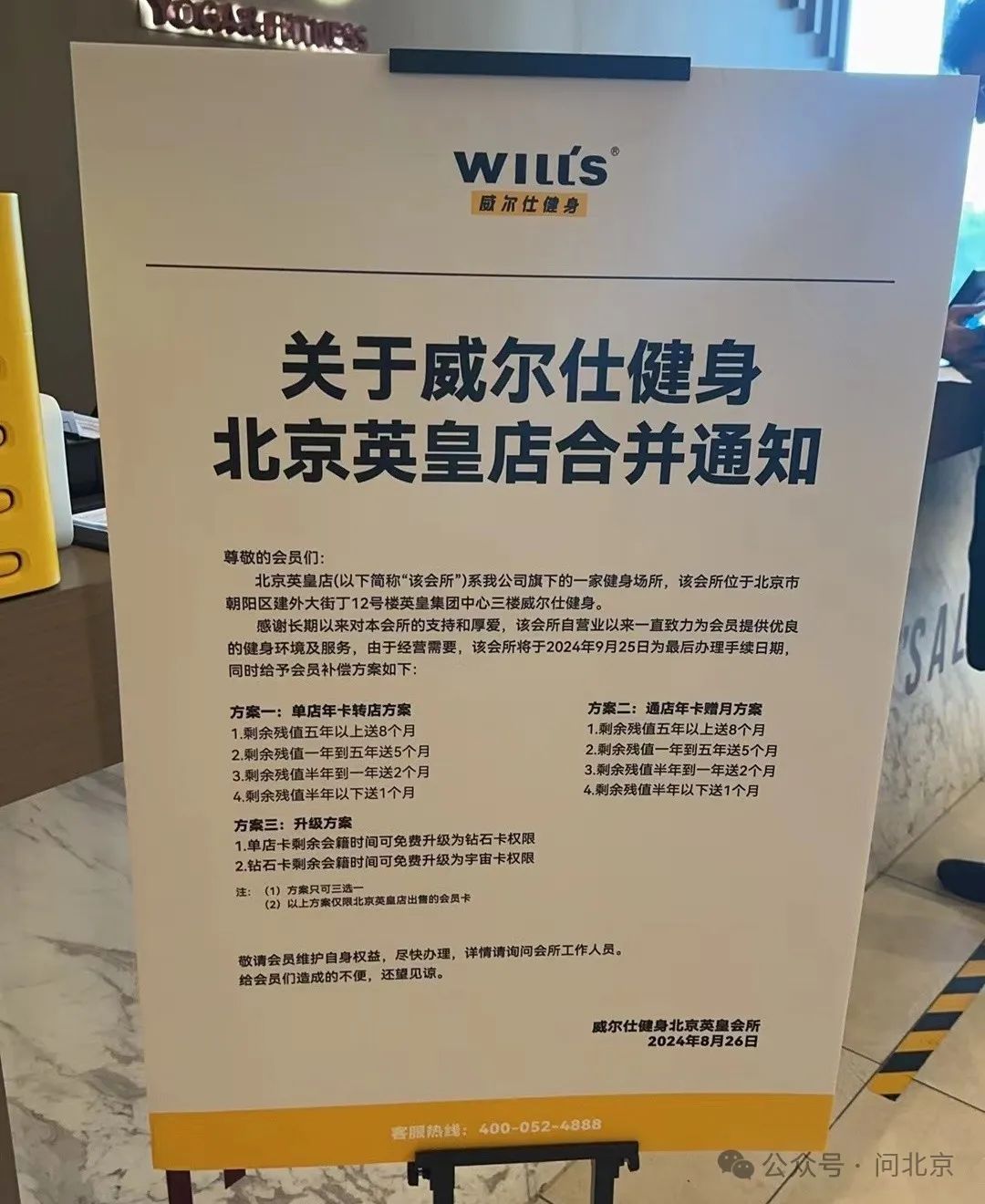 威尔仕健身北京英皇店闭店通知/受访者供图