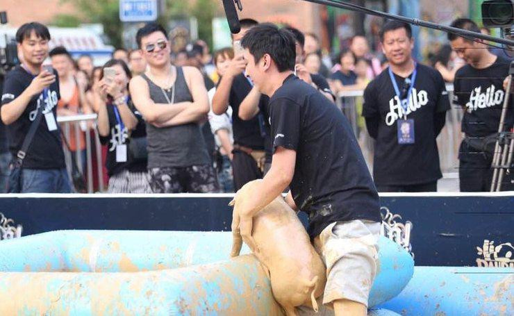 当然,这亲自抓猪的劲儿头还是挺接地气的。