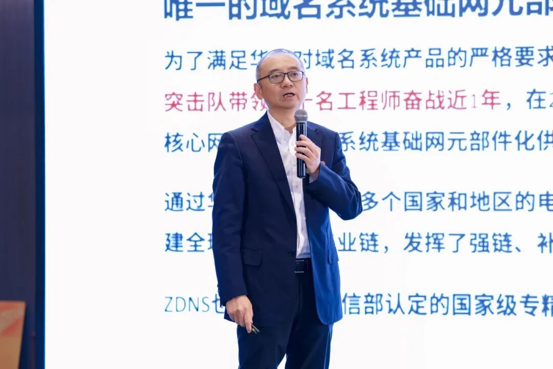 互联网域名系统北京市工程研究中心有限公司(ZDNS)党支部书记、董事长毛伟从“一根网线”讲起,分享域名技术如何为科学城企业筑牢网络安全防线,展现“党建链接一切”的硬核力量。