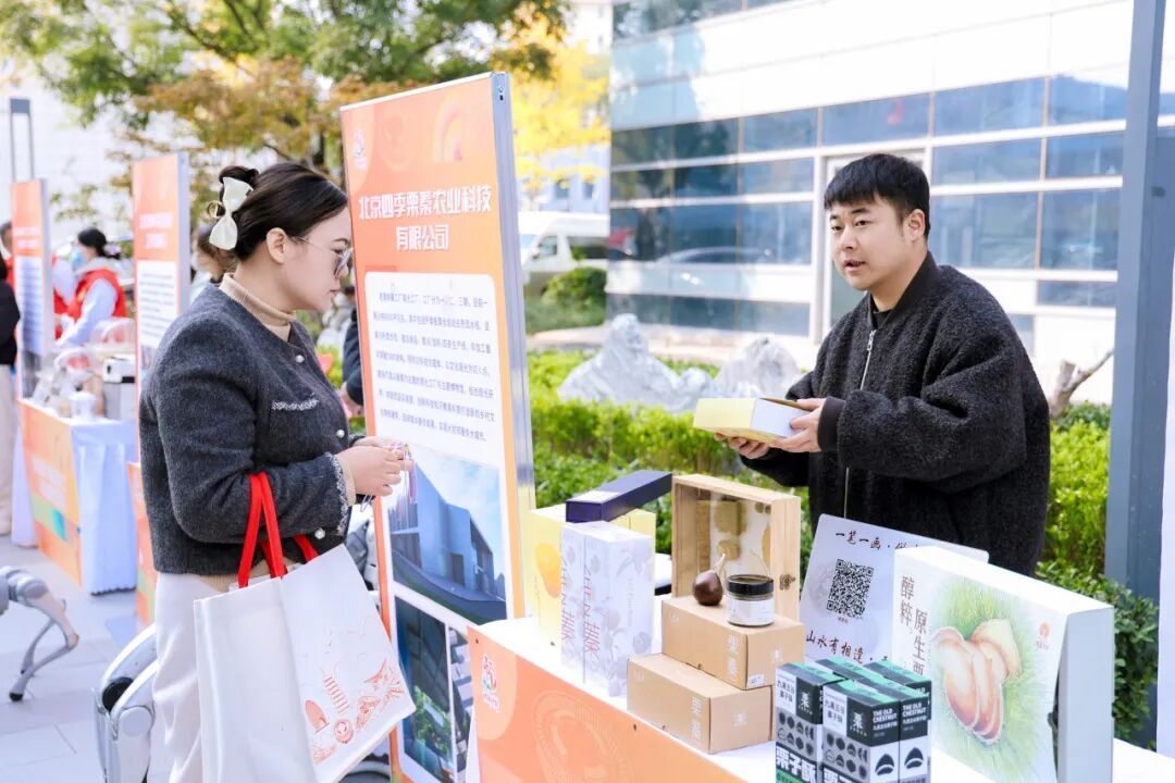 便民服务区精准对接需求。北京怀柔医院“控糖医先锋”义诊展台前,医生为新就业群体、企业员工提供基础问诊与血压测量,并分享控糖及秋冬养生技巧;中国银行政策宣传站工作人员为企业解读融资政策,为新就业群体解答便民金融疑问;公安分局反诈宣传角民警结合案例讲解诈骗套路,发放反诈手册;老栗树农业展位上,栗子、核桃等本土农产品整齐摆放,参会人员可了解种植故事、按需购买。