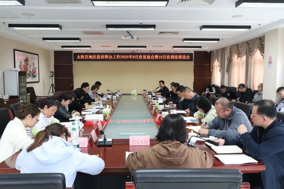 10月11日,太阳宫地区召开“接诉即办”工作2025年9月份复盘会暨10月调度推进会,通报9月办件情况,复盘分析扣分案件,并对下一步工作进行部署。地区领导班子成员,七室一委副主任,综合行政执法队常务副队长,一站四中心主任,市场所所长,乡联社、各村经济合作社社长,各社区书记,新纪物业、新纪开发、绿化公司负责人参加。办事处主任赵建峰主持会议。
