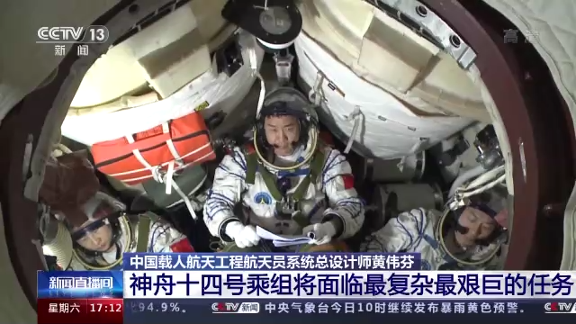 中国载人航天工程航天员系统总设计师 黄伟芬:一方面是要分析每次任务的特点,每个人的特点跟任务的匹配性,以及他们彼此之间的心理相融性、飞行经验、年龄等各方面因素,最后来综合确定。因为陈冬也飞过神十一任务,神十一任务他们飞了33天。我们认为还是比较长的一个时间,然后也有组合体飞行的这个经验,刘洋也有组合体飞行的经验,然后我们认为这三名航天员年富力强,来执行神十四任务是最合适的人选。