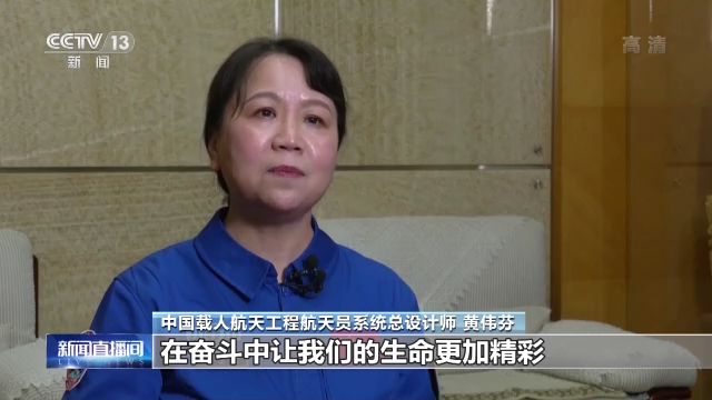 中国载人航天工程航天员系统总设计师 黄伟芬:在空间站能够健康的生活,高效的工作,能够非常珍惜和享受这个充满挑战和奇妙的太空之旅。也和他们有一个分享,就是仰望星空,脚踏实地,在奋斗中让我们的生命更加精彩。