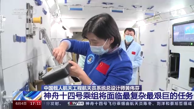 中国载人航天工程航天员系统总设计师 黄伟芬:会有多个首次,首次进驻两个实验舱,我们首次在问天舱进行太空授课,我们要首次完成三舱的组装建造等等,首次利用气闸舱、小机械臂、大小机械臂的组合臂来进行出舱活动。