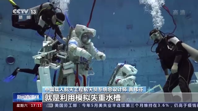 中国载人航天工程航天员系统总设计师 黄伟芬:我们在八大类百余课目的训练基础上,要对他们新的特点、新的任务、新的状态、新的变化的这些地方,我们是重点进行了强化的训练。我们给航天员进行了利用模拟失重水槽、低压环境的出舱活动训练,还有在出舱活动程序训练模拟器上进行训练,利用虚拟现实训练器和机械臂操作训练台来进行协同的训练和演练。