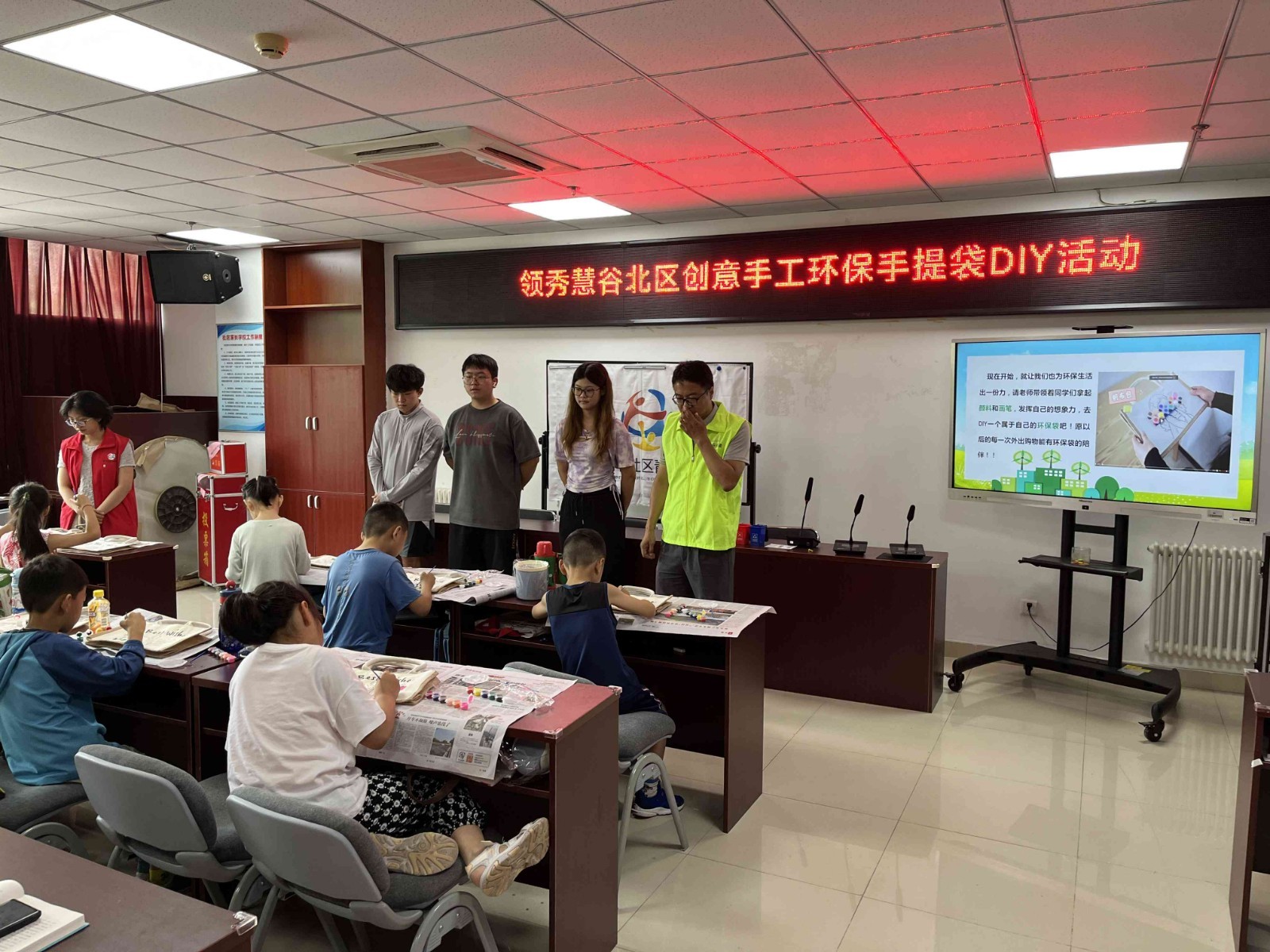 随后,是创意手工环保手提袋DIY环节。在大学生志愿者的指导下,孩子们纷纷拿起画笔,绘制出一个个独一无二、充满童趣的环保手提袋。有的孩子画上了自己喜爱的卡通形象,有的则写上了环保宣言,每一个作品都承载着孩子们对美好环境的向往和承诺。这一环节不仅锻炼了孩子们的动手能力和创造力,更在潜移默化中加深了他们对垃圾分类重要性的认识。