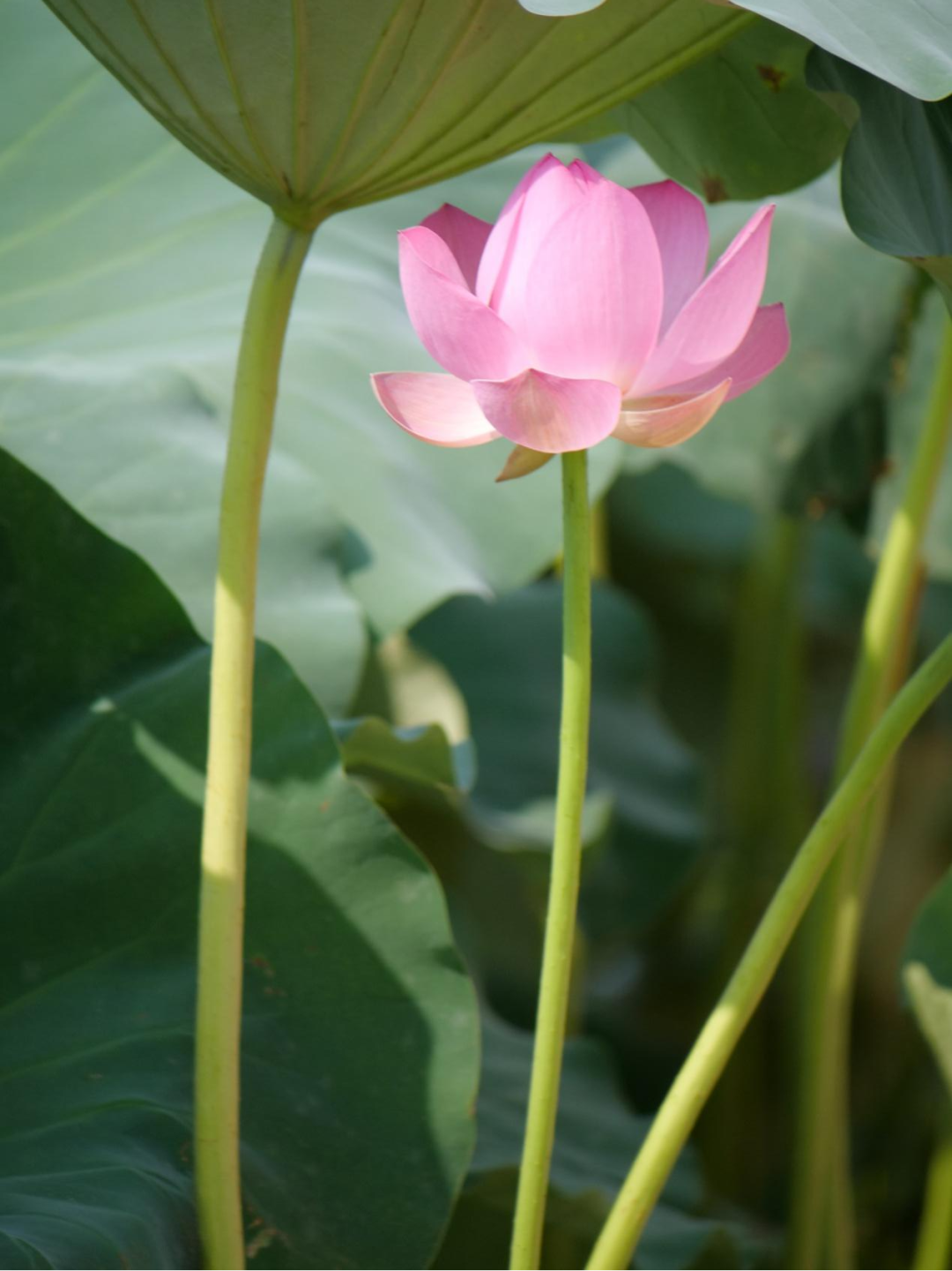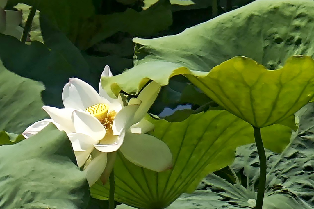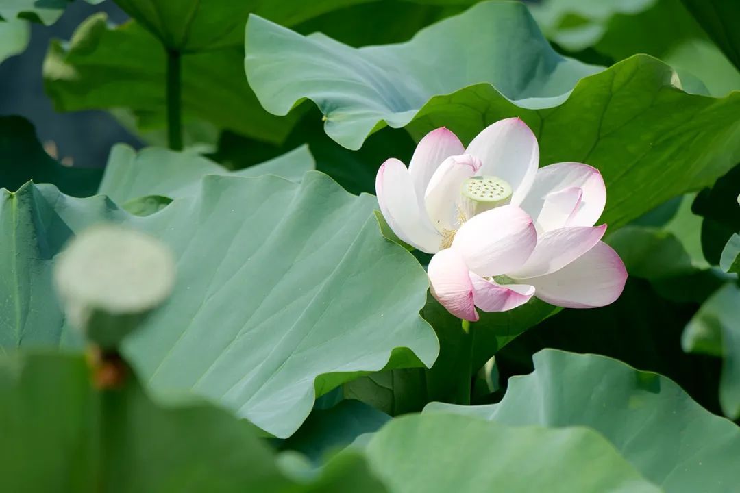 和碧绿如伞的荷叶中